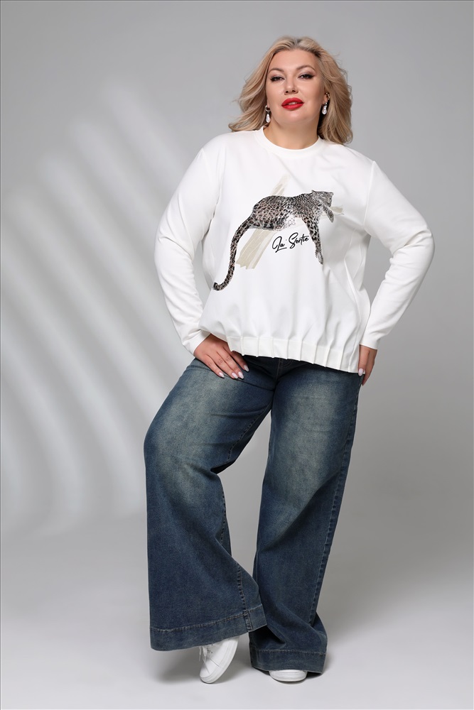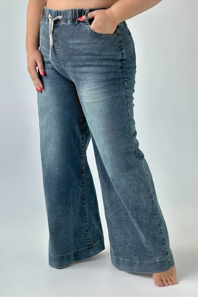 Элегантные брюки из мягкой джинсовой ткани. Модель отлично сидит за счет эластичной резинки на поясе. С помощью кулиски, которая проходит по поясу можно регулировать объём изделия. Боковые карманы с отрезным бочком и накладные карманы по спинке добавляют джинсам практичности и функциональности. Модель с комфортной высокой посадкой не сковывает движений. Брюки привлекают внимание широким клешем. Комфортные джинсы - отличная база для создания разнообразных образов. Их могут смело носить как юные, спортивные барышни, так и изысканные дамы в возрасте. Правильно подобрав аксессуары, можно создавать смелые, утонченно женственные, строгие, деловые образы. (Во избежание окраски при первой носке, удалить с ткани новых джинсов излишки пигмента поможет легкая стирка с одним из закрепителей цвета (пищевой соды, уксуса, лимонной кислоты)