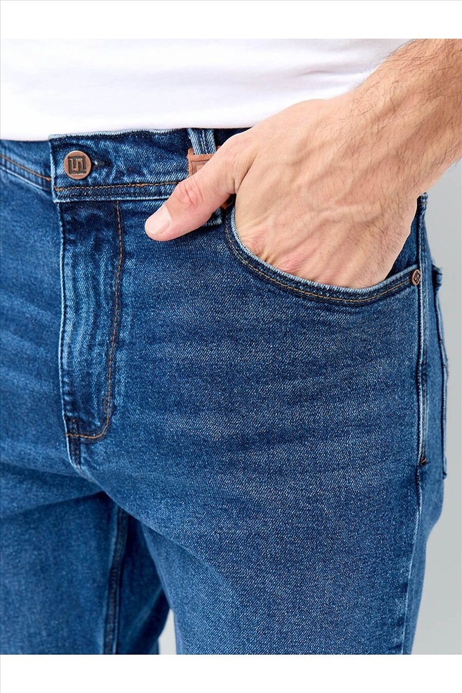Мужские классические джинсы с пятью карманами. Посадка Regular fit (полуоблегающие по бедру), высокая талия. Застежка на молнии. Зауженные к низу. Выполнены из слабоэластичной ткани denim comfort stretch. Средняя стирка с потёртостями и "усами" спереди и потёртостями сзади. Параметры указаны для размера 32. Длина внутреннего шва - 83, 5 см.