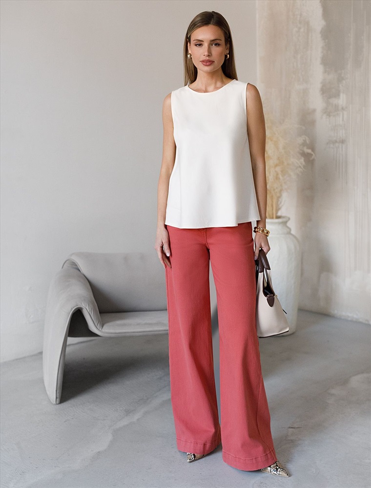 Джинсы-трубы выполнены из мягкого хлопкового денима с эластаном. Модель свободного кроя с посадкой на талии визуально вытягивает силуэт и подчеркивает достоинства. Отлично впишется в расслабленные летние образы. Наличие эластана в составе способствует формустойчивости и комфортной носке. Изделие дополнено брендированным патчем из эко-кожи и сочетается в костюме с курткой D51.033