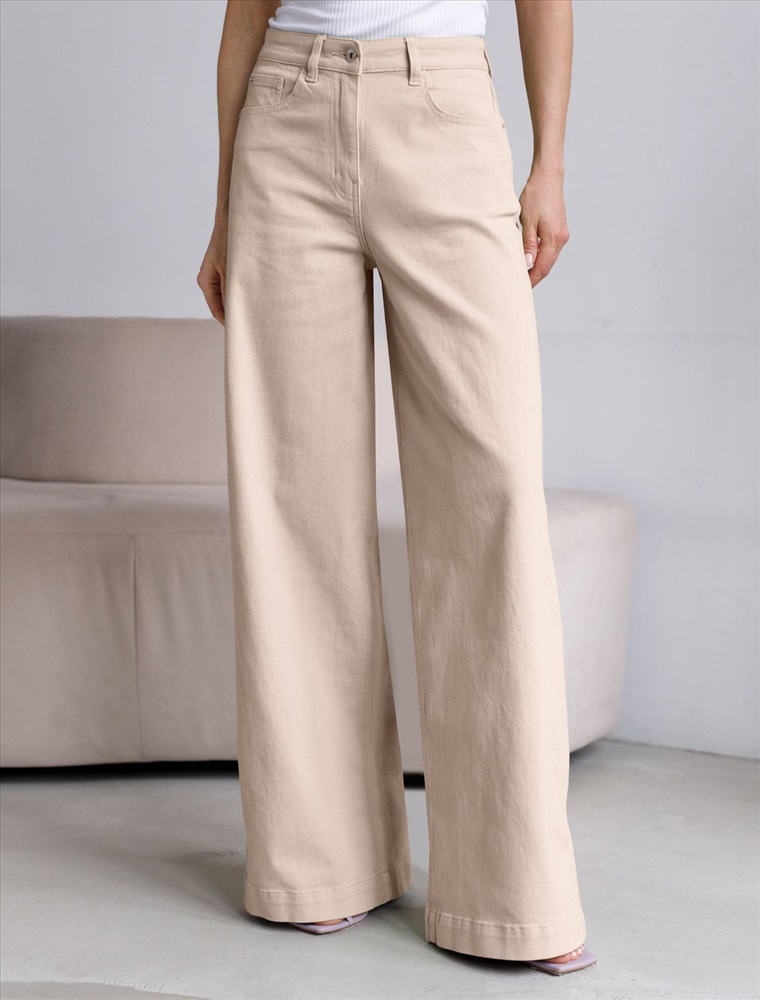 Состав: 98%Хлопок 2%ПУ; Плотность: 10.6 OZ; Параметры модели на первом фото: Рост 172, бюст 88, талия 64, бедра 88 Джинсы-трубы выполнены из мягкого хлопкового денима с эластаном. Модель свободного кроя с посадкой на талии визуально вытягивает силуэт и подчеркивает достоинства. Отлично впишется в расслабленные летние образы. Наличие эластана в составе способствует формустойчивости и комфортной носке. Изделие дополнено брендированным патчем из эко-кожи и сочетается в костюме с курткой D51.033