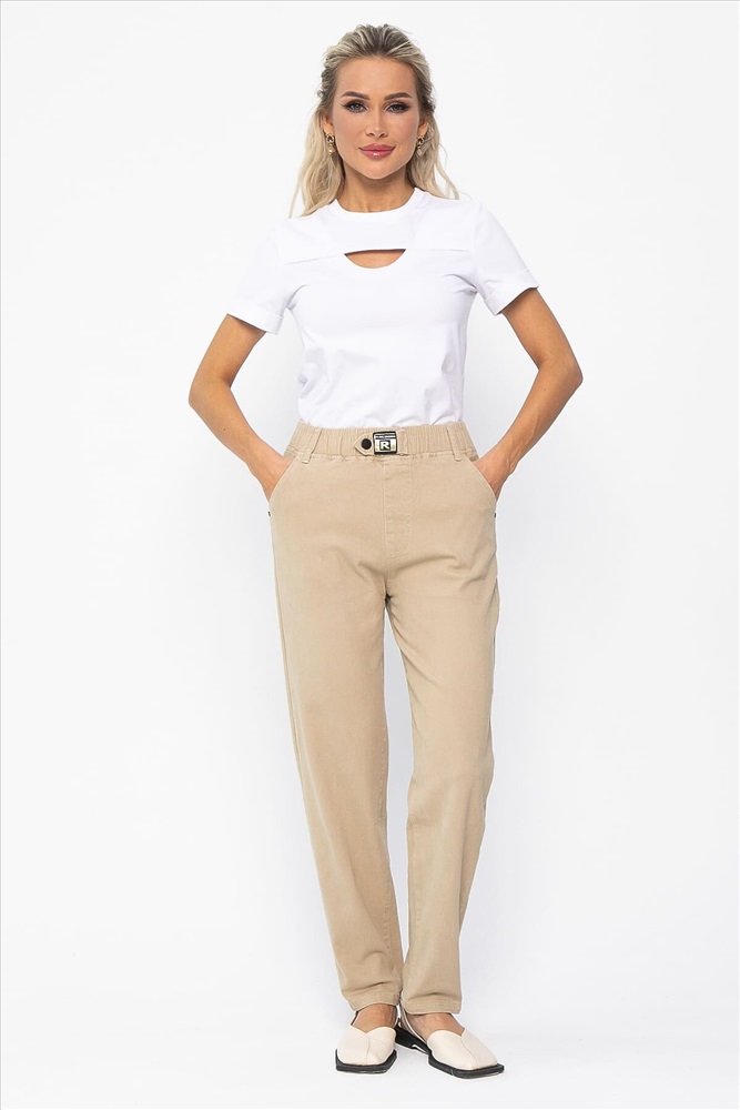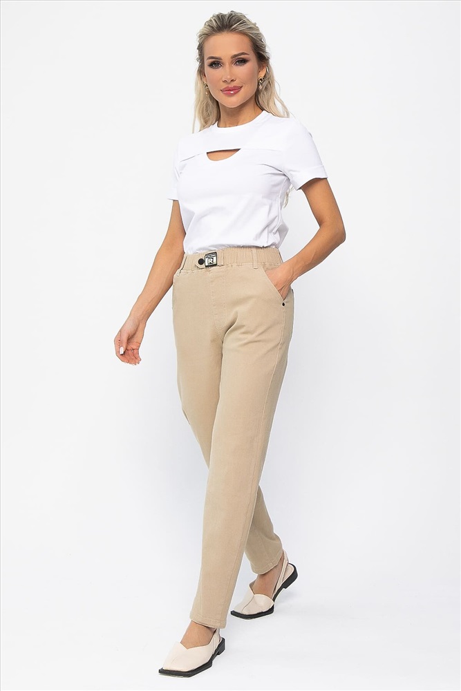 Откройте для себя идеальные джинсы на резинке, которые станут любимой вещью в вашем гардеробе! Выполнены в красивом песочном оттенке, который идеально сочетается с любым образом. Эластичный пояс на резинке обеспечивает идеальную посадку и максимальный комфорт в течение всего дня. Легкое заужение книзу формирует современный силуэт, подчеркивающий ноги и добавляющий образу изюминку. Боковые и задние карманы — практичные карманы для хранения мелочей, которые придают джинсам функциональность и удобство. С этими джинсами вы сможете создать множество стильных образов для любого случая!