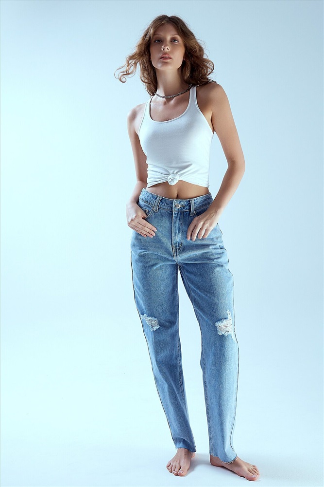 ID товара: 1192177 Состав: 100% Хлопок Сезон: Демисезон Длина: Полная Фасон: Зауженные Вид застежки: Молния, пуговица Посадка: Высокая Тип карманов: Накладные, с отрезным бочком Основная ткань: Хлопок Стиль: Повседневный Уход: Деликатная стирка при 30 градусах Фактура материала: Деним Страна бренда: Беларусь Страна производства: Беларусь Стильные голубые джинсы для женщин – идеальный выбор для создания модных повседневных образов. Эта модель с высокой посадкой подчеркивает талию и создает эффект стройного силуэта, а зауженный к низу крой визуально удлиняет ноги. Небольшие рваные детали на коленях добавляют образу дерзости и современности, делая джинсы универсальными для разных стилей. Изготовленные из качественного денима, эти женские джинсыобеспечивают комфорт в течение всего дня. Они отлично сочетаются с базовыми футболками, рубашками, свитшотами и даже элегантными блузами – можно создавать как повседневные, так и более стильные луки. Если вы ищете удобные и модные женские джинсы, купить эту модель – отличное решение. Универсальный голубой оттенок и продуманный крой делают их must-have в гардеробе современной девушки. Подберите свой размер – и наслаждайтесь безупречным комфортом и стилем каждый день! Комментарии к товару