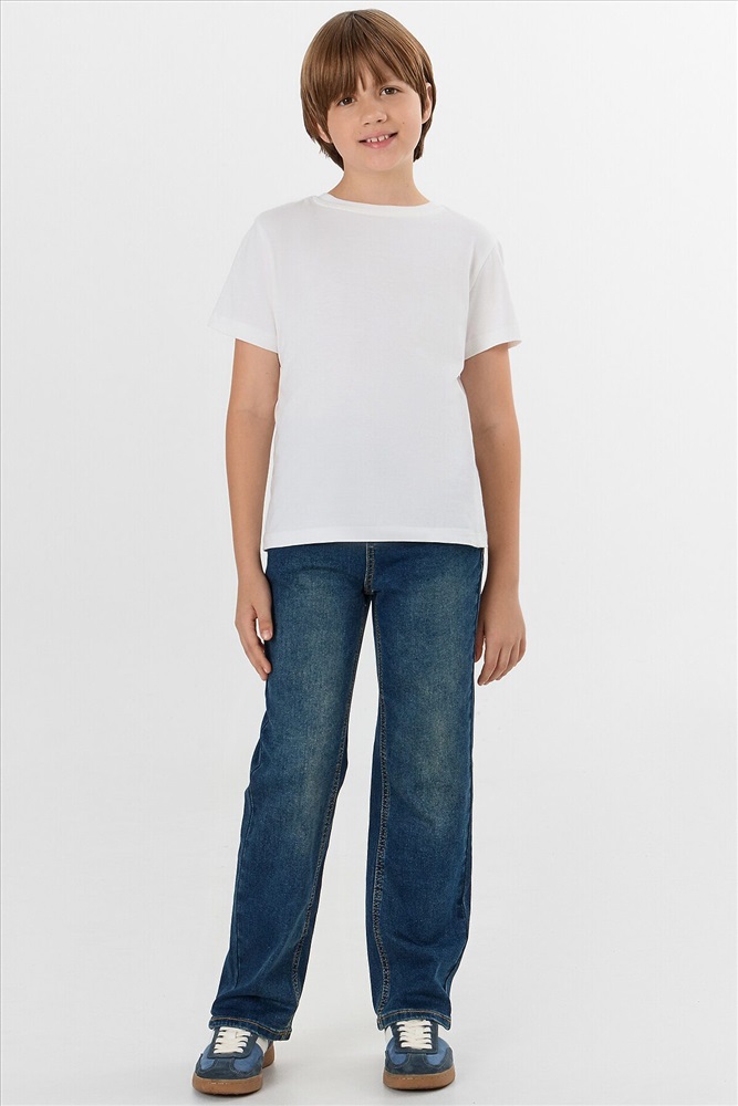 ID товара: 1201467 Состав: 99% Хлопок; 1% Эластан Сезон: Демисезон Длина: Полная Фасон: Прямые Вид застежки: Молния, пуговица Тип карманов: Накладные, с отрезным бочком Основная ткань: Хлопок Стиль: Повседневные Уход: Деликатная стирка при 30 градусах Фактура материала: Деним Страна бренда: Беларусь Страна производства: Беларусь Брюки джинсовые для мальчиков Комментарии к товару