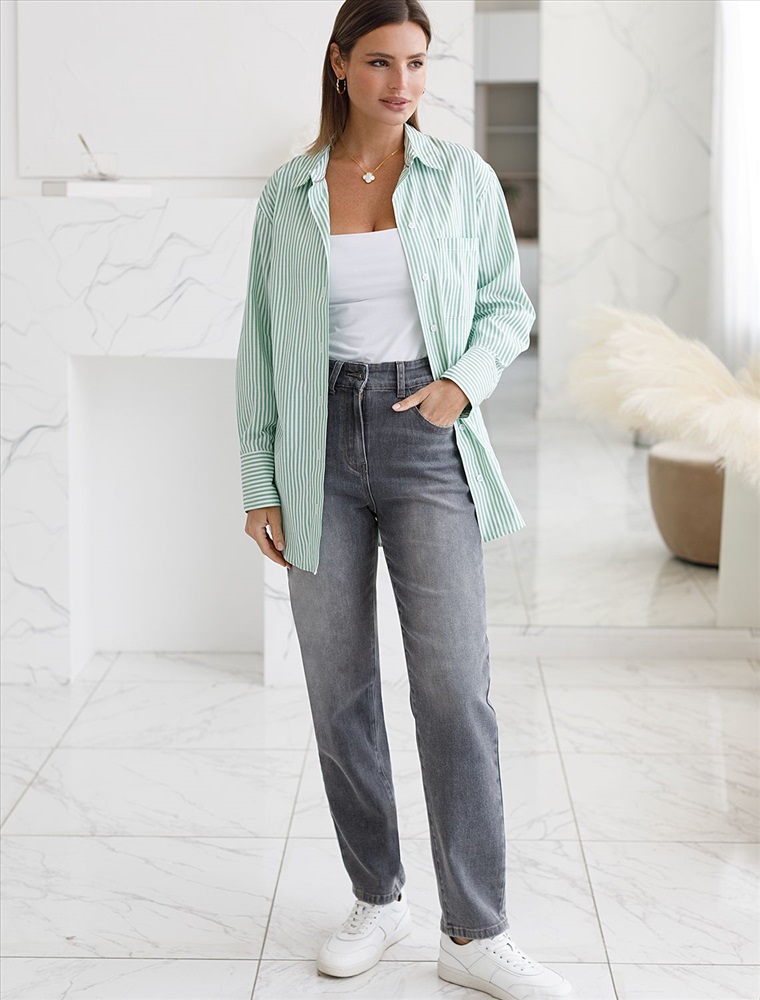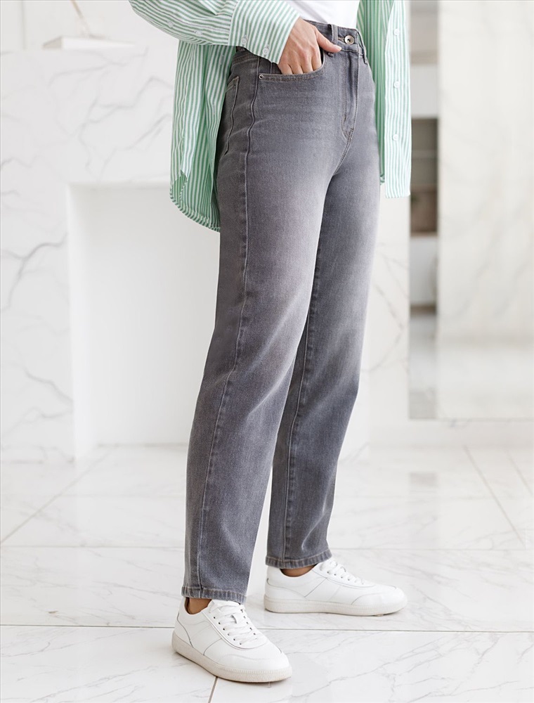 Свободные джинсы мом фит серого цвета из денима средней плотности 11 OZ — идеальный выбор для тех, кто ценит комфорт и стиль каждый день. После пошива изделие подвергли специальному виду вошинга — олт-стоун вошинг, что дословно значит стирка с каменной солью. Такой вид вошинга позволяет получить стильные потертости на серых оттенках денима. Благодаря эластичной ткани джинсы прекрасно садятся на любую фигуру, не сковывают движений и обеспечивают ощущение уюта. Материал отличается приятной текстурой и плотностью, что особенно важно в динамичном ритме городской жизни. Такие модели подходят на большие размеры и смотрятся современно. Эти джинсы — отличный вариант для тех, кто предпочитает практичные и одновременно модные вещи в гардеробе. Они легко впишутся в ваш повседневный образ и подчеркнут индивидуальность благодаря продуманному дизайну и качеству материала.
