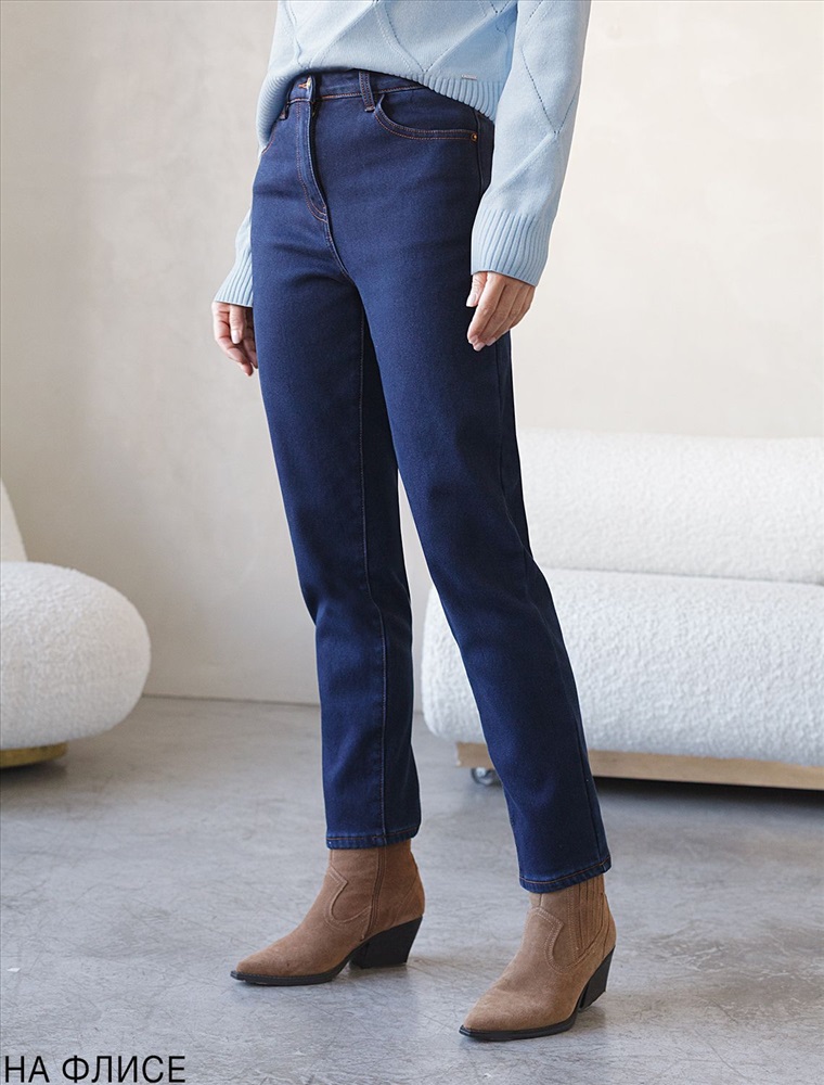 Джинсы силуэта mom-fit выполнены из эластичного денима плотностью 17.6 oz. Внутренняя сторона изделия утепленная мягким флисом надежно защищает от холода и ветра. Любимая во всем мире модель с посадкой на талии подчеркивает фигуру и скрывает недостатки. Мастхэв на холодную осень и зиму и самый удобный элемент повседневного гардероба.