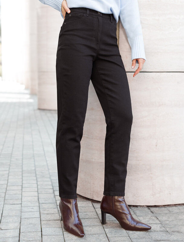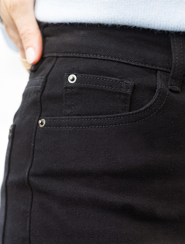 В синем цвете ткань немного толще, чем голубой и черный цвета. Свободные штанины вверху, заужаются к низу, делая силуэт стройнее, открывая нижнюю часть лодыжки.