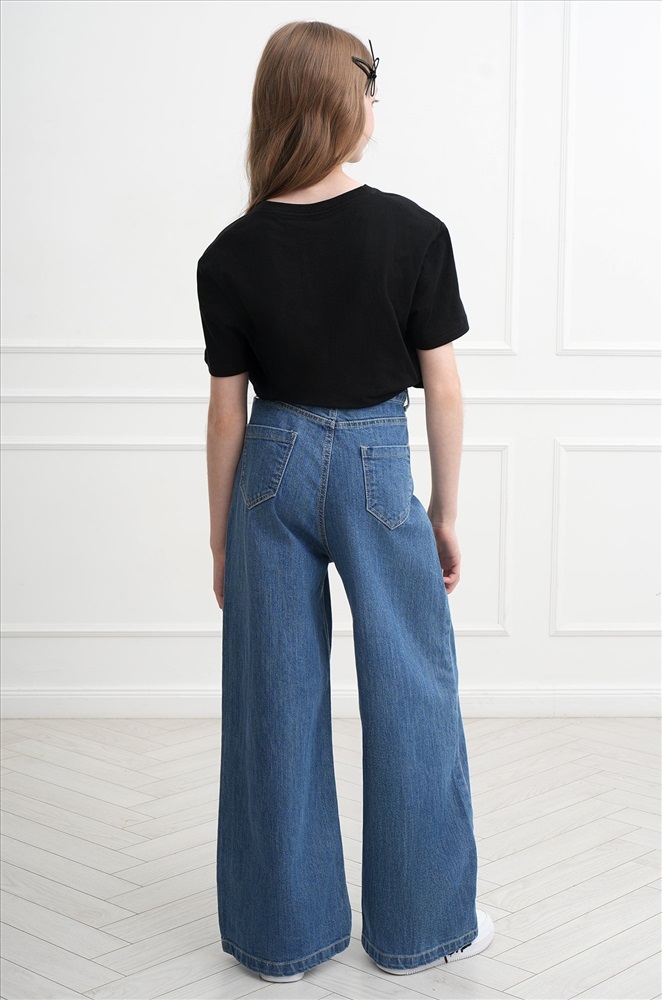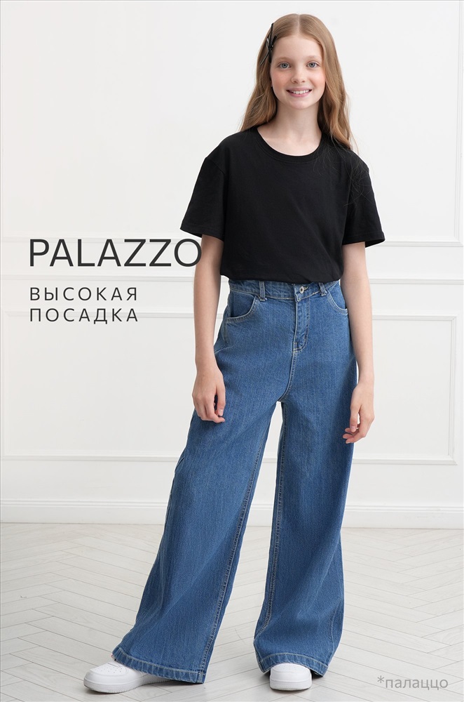 — широкие джинсы палаццо имеют высокую посадку, которая подчёркивает талию и подходит для сочетания с любым верхом;