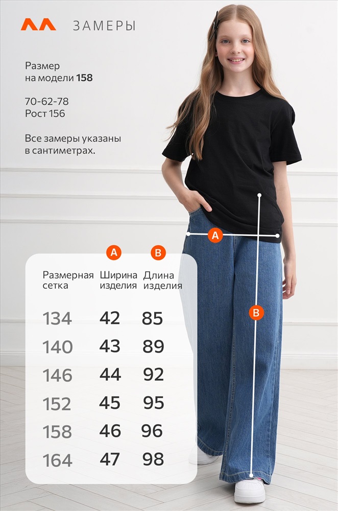 Размер 134: длина:85 см; ширина по бедрам:42 см.