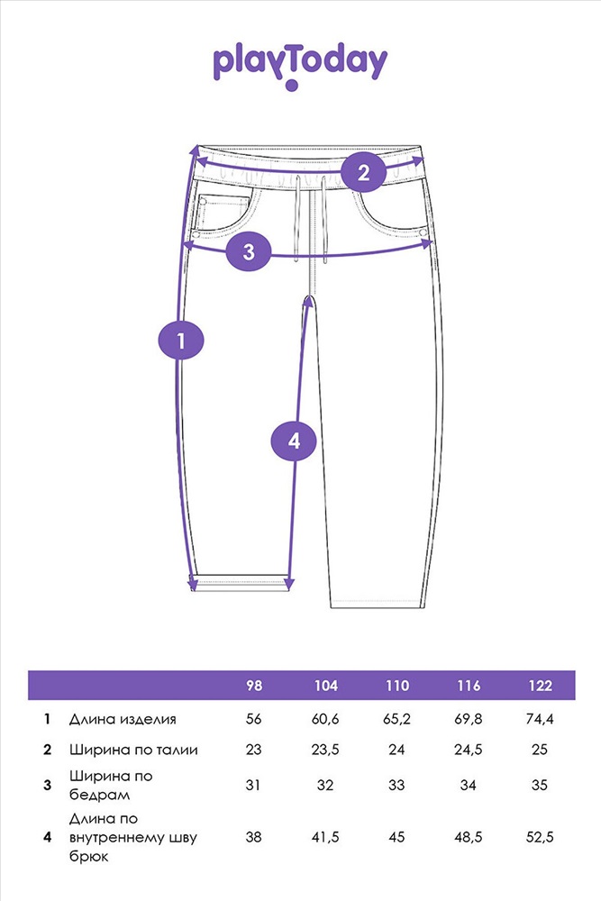 Производитель: PLAYTODAY ID товара: 1121714 Состав: 70% Хлопок, 28% Полиэстер, 2% Эластан Сезон: Весна/Лето Длина: Полная Фасон: Прямые Вид застежки: Шнурок Рисунок: Фантазийный Тип карманов: Накладные, с отрезным бочком Основная ткань: Хлопок Стиль: Повседневный Страна бренда: Германия Страна производства: Китай