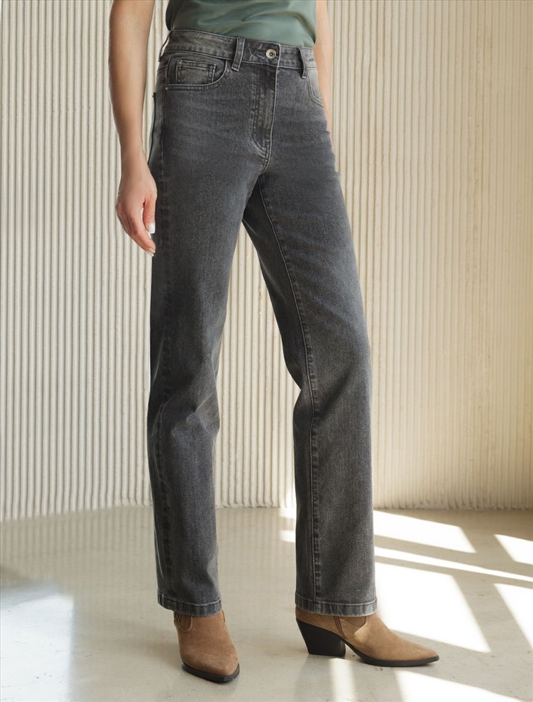 Прямые джинсы серого цвета классического прямого кроя созданы для комфортной носки в осенний и демисезонный период. Модель выполнена из плотного, но мягкого денима с эффектной декоративной стиркой, прямой лаконичный фасон джинс визуально стройнит и вытягивает фигуру. Высокая посадка и правильный крой обеспечивают удобство и поддерживают женственный аккуратный силуэт без лишнего объема. Особое внимание уделено качественной фурнитуре медного цвета, а карманы и кокетка расположены на правильном уровне, что подчеркивает достоинства фигуры и скорректировать. Эластичный материал делает посадку максимально комфортной на маленькие и на большие размеры. Повседневные джинсы подходят на девушек и женщин низкого или высокого роста, прдставлена различная ростовка.