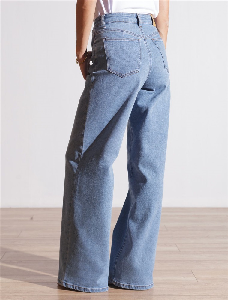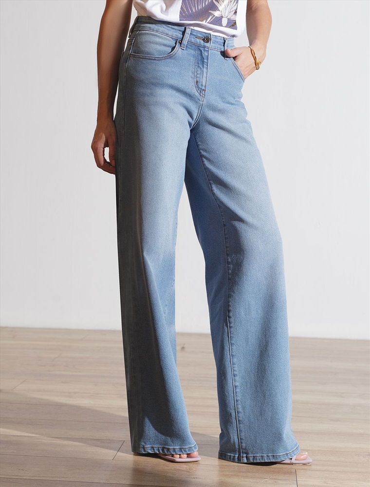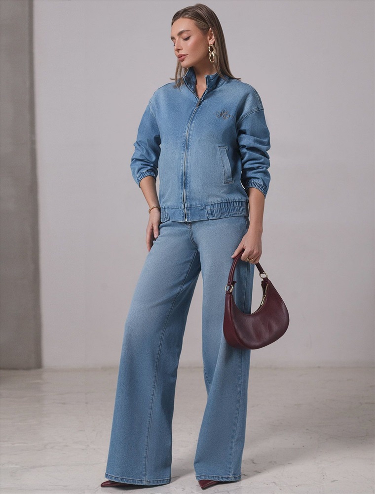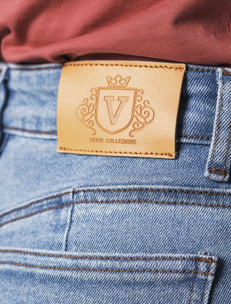 Стильные джинсы трубы голубого цвета прямого кроя выполнены из эластичного денима плотностью 12,4 OZ, что подходит для холодной и прохладной погоды. После пошива изделие подвергли специальному виду вошинга — salt-stone washing (солт-стоун вошинг), что дословно значит стирка с каменной солью. Такой вид вошинга позволяет получить стильные потертости на голубых оттенках денима. Джинсы правильного кроя визуально вытягивают силуэт, благодаря эластану в составе аккуратно садятся на любую фигуру, подчеркивая достоинства и обеспечивают максимальный комфорт в течение дня, не сковывая движения. Широкая размерная линейка подходит для разных типов фигур: свободные джинсы комфортны как для обладательниц пышных форм, так и для худеньких. Джинсы идеально держат форму даже при активном движении и не вытягиваются, что делает их особенно удобными для повседневной носки. Качественная надежная фурнитура делает эти джинсы премиальными.