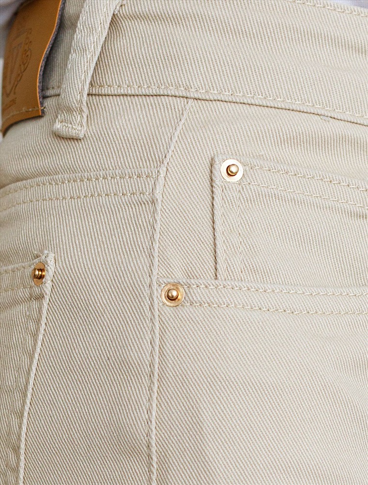 Джинсы трубы бежевого цвета выполнены из эластичного денима плотностью 11 OZ - легкость и свобода движений, подходят для активного дня. Джинсы прямого кроя визуально вытягивают силуэт, благодаря эластану в составе аккуратно садятся на любую фигуру, подчеркивая достоинства, и обеспечивают максимальный комфорт в течение дня, не сковывая движения. Широкая размерная линейка подходит для разных типов фигур: свободные джинсы комфортны как для обладательниц пышных форм, так и для худеньких. Джинсы средней плотности идеально держат форму даже при активном движении и не вытягиваются после долгой носки. Качественная фурнитура и нашивка из эко-кожи с логотипом бренда делают эти джинсы премиальными. Широкий крой от бедра добавляет актуальности — такие джинсы отлично сочетаются как с обувью на каблуке, так и на плоском ходу. Благодаря универсальному дизайну джинсы легко комбинируется с разными элементами гардероба.