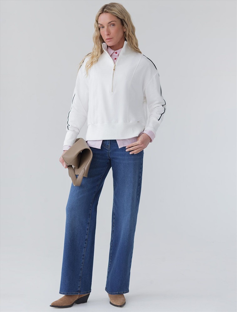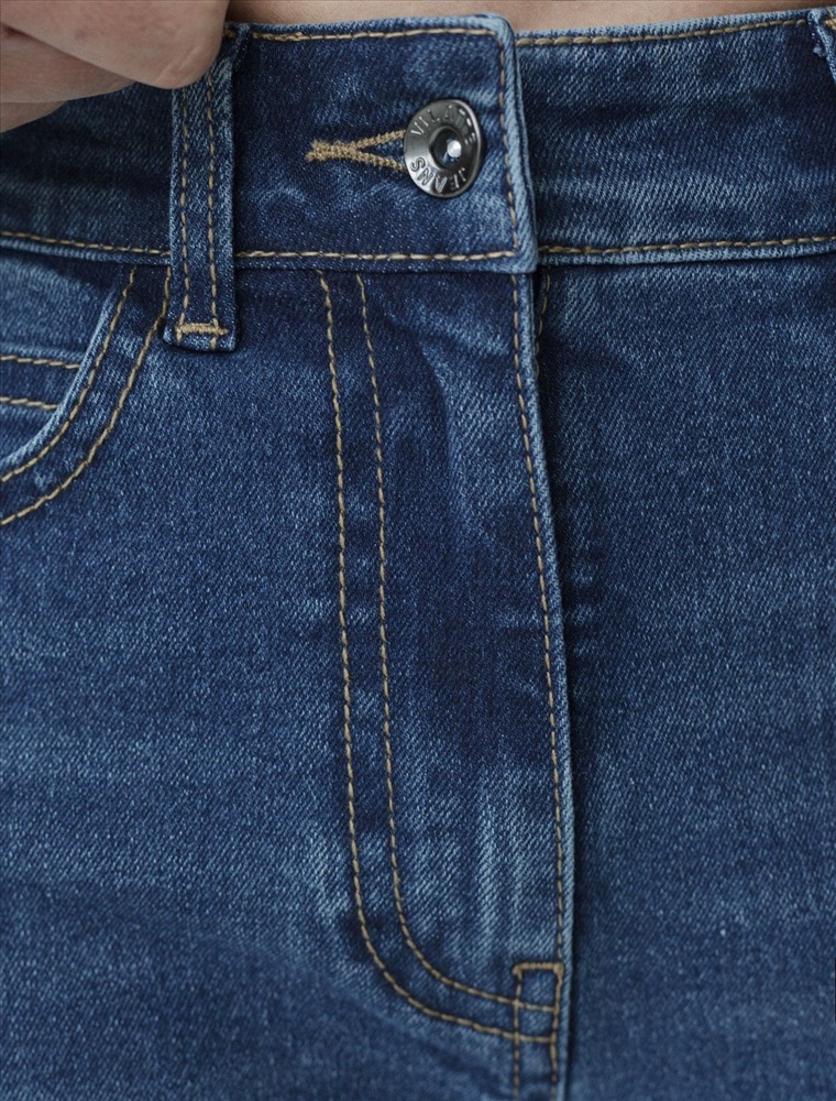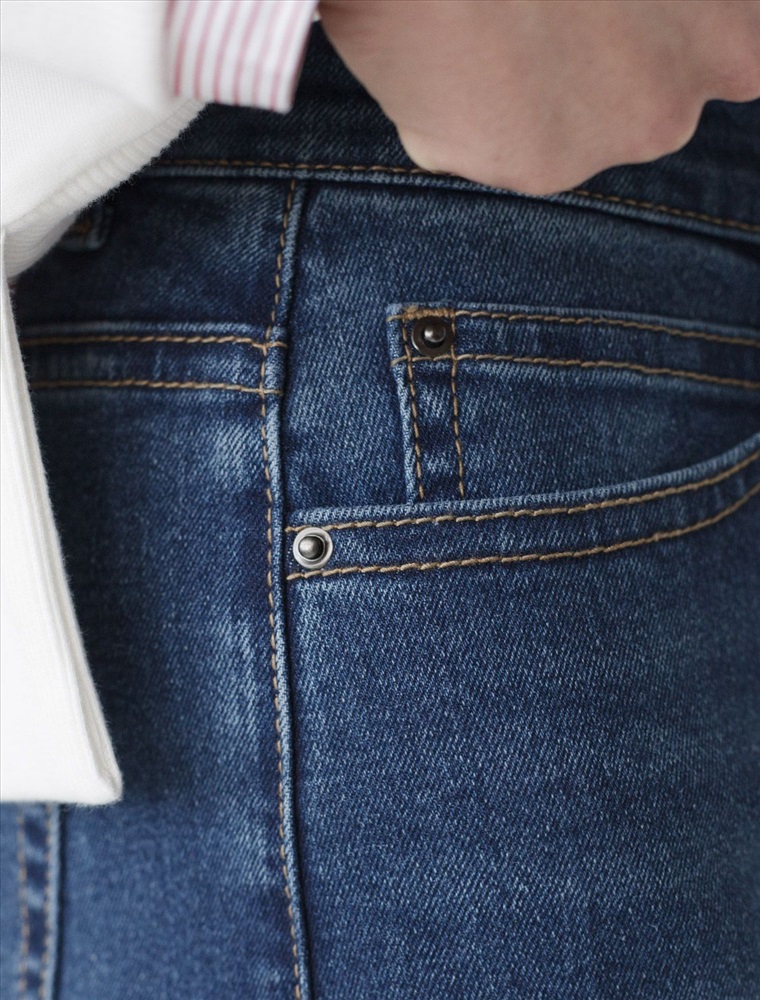 Стильные прямые джинсы синего цвета цвета прямого кроя выполнены из эластичного денима плотностью 12,6 OZ, что делает их особенно удобными для повседневной носки. При производстве джинсов применена технология «вареные швы», которая основана на локальном вымывании красителя из плотных участков ткани — сгибов и швов — за счет механического воздействия во время промышленной стирки. Стоун вошинг - энзимная стирка с камнями. Камни воздействуют на ткань, выбивая краску на швах, создавая контрастные мраморные потертости и мягкость.Легкая декоративная стирка добавляет интересный акцент и подчеркивает современный дизайн. Джинсы правильного кроя визуально вытягивают силуэт, благодаря эластану в составе аккуратно садятся на любую фигуру, подчеркивая достоинства и обеспечивают максимальный комфорт в течение дня, не сковывая движения. Широкая размерная линейка подходит для разных типов фигур: свободные джинсы комфортны как для обладательниц пышных форм, так и для худеньких. Джинсы идеально держат форму даже при активном движении и не вытягиваются после долгой носки. Качественная надежная фурнитура делает эти джинсы премиальными. Прямой крой добавляет актуальности — такой тренд отлично сочетается как с обувью на каблуке, так и на плоском ходу. Благодаря универсальному дизайну джинсы легко комбинируются с разными элементами гардероба.