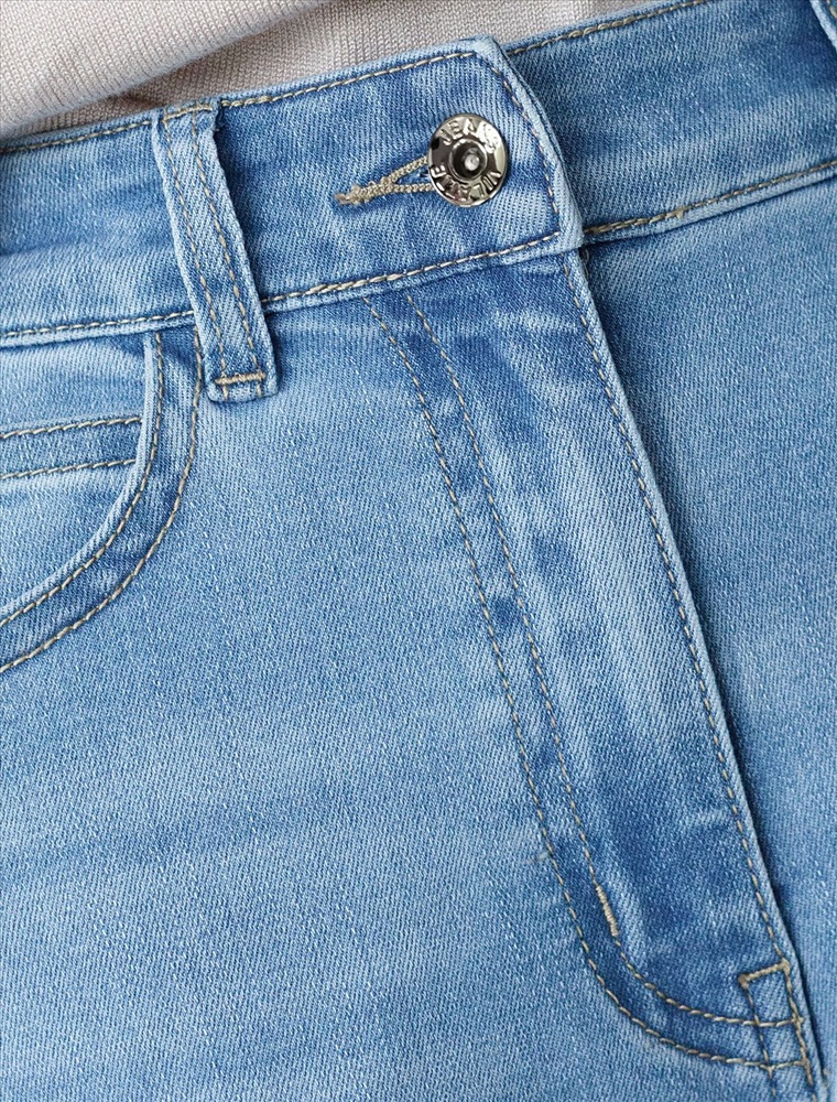 Стильные прямые джинсы голубого цвета цвета прямого кроя выполнены из эластичного денима плотностью 12,5 OZ, что делает их особенно удобными для повседневной носки. При производстве джинсов применена технология «вареные швы», которая основана на локальном вымывании красителя из плотных участков ткани — сгибов и швов — за счет механического воздействия во время промышленной стирки. Стоун вошинг - энзимная стирка с камнями. Камни воздействуют на ткань, выбивая краску на швах, создавая контрастные мраморные потертости и мягкость. Легкая декоративная стирка добавляет интересный акцент и подчеркивает современный дизайн. Джинсы правильного кроя визуально вытягивают силуэт, благодаря эластану в составе аккуратно садятся на любую фигуру, подчеркивая достоинства и обеспечивают максимальный комфорт в течение дня, не сковывая движения. Широкая размерная линейка подходит для разных типов фигур: свободные джинсы комфортны как для обладательниц пышных форм, так и для худеньких. Джинсы идеально держат форму даже при активном движении и не вытягиваются после долгой носки. Качественная надежная фурнитура делает эти джинсы премиальными. Прямой крой добавляет актуальности — такой тренд отлично сочетается как с обувью на каблуке, так и на плоском ходу. Благодаря универсальному дизайну джинсы легко комбинируются с разными элементами гардероба.