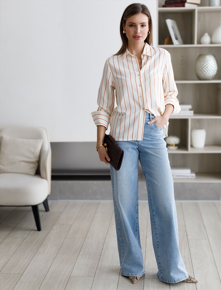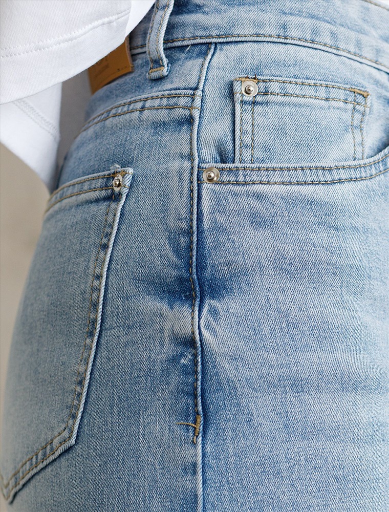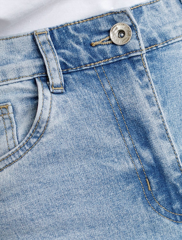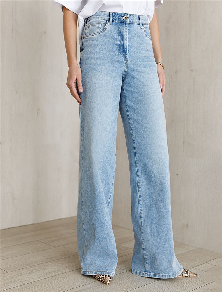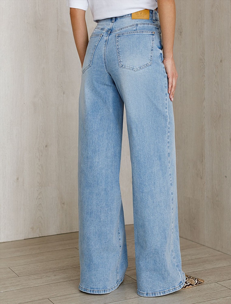 Джинсы трубы голубого цвета выполнены из эластичного денима плотностью 15,6 OZ - четкий силуэт и самый лучший вариант для прохладной погоды. После пошива изделие подвергли специальному виду вошинга — salt-stone washing (солт-стоун вошинг), что дословно значит стирка с каменной солью. Такой вид вошинга позволяет получить стильные потертости на голубых оттенках денима. Джинсы прямого кроя визуально вытягивают силуэт. Широкая размерная линейка подходит для разных типов фигур: свободные джинсы комфортны как для обладательниц пышных форм, так и для худеньких. Плотные джинсы с эластаном идеально держат форму даже при активном движении и не вытягиваются после долгой носки. Качественная фурнитура и нашивка из эко-кожи с логотипом бренда делают эти джинсы премиальными. Широкий крой добавляет актуальности — такие джинсы отлично сочетаются как с обувью на каблуке, так и на плоском ходу. Благодаря универсальному дизайну джинсы легко комбинируется с разными элементами гардероба.