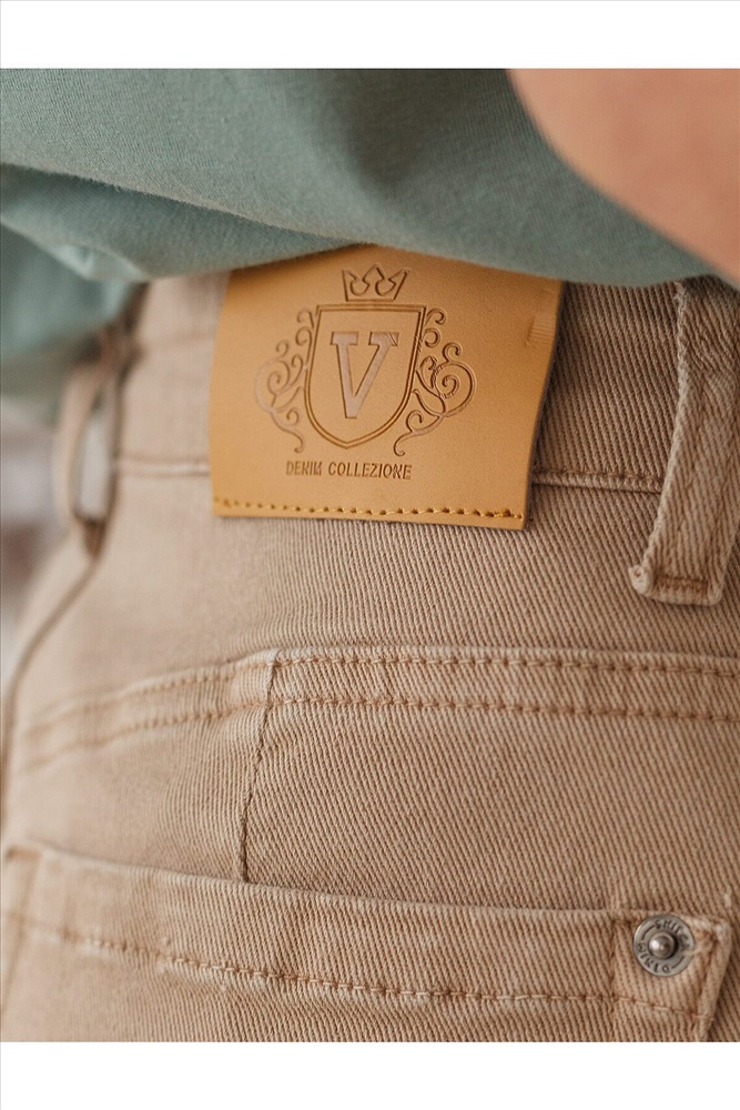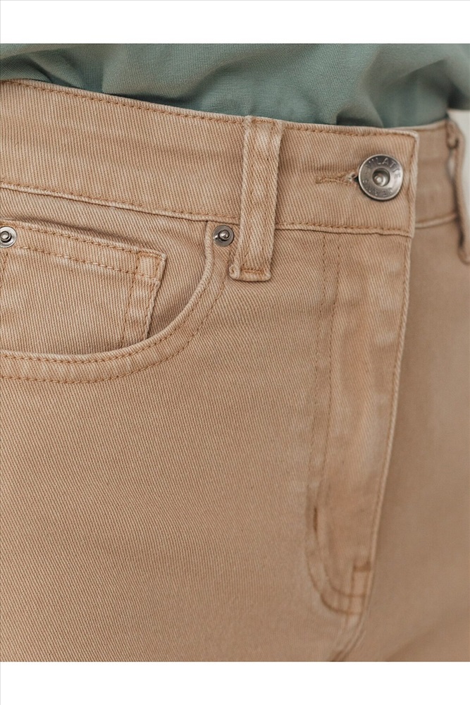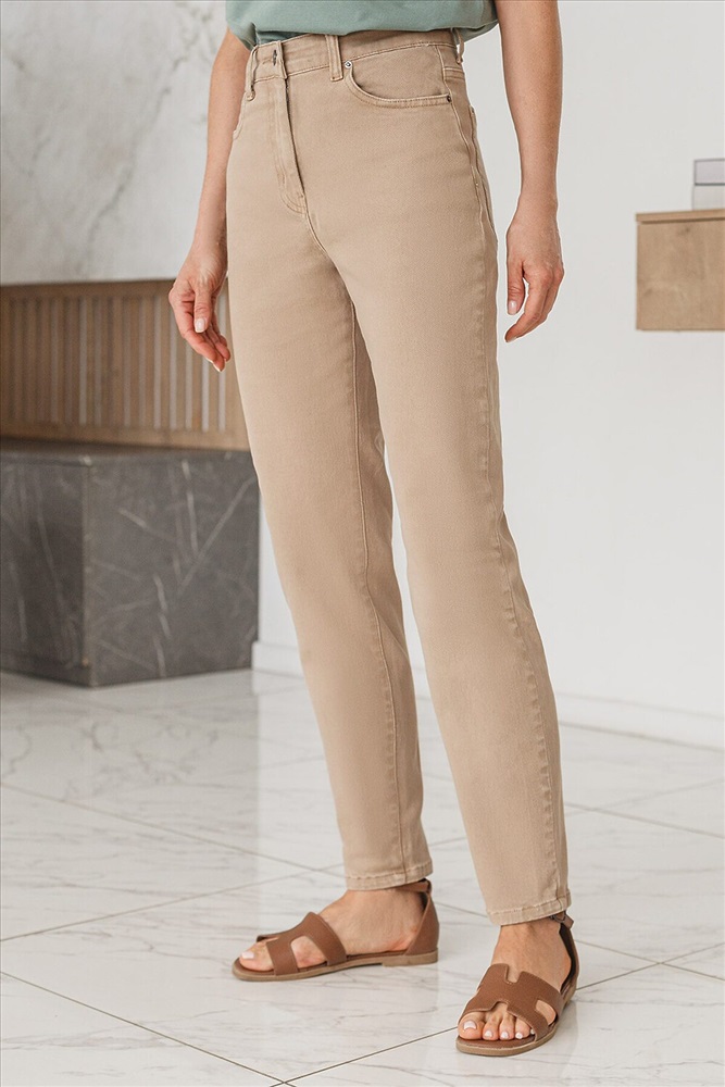 Джинсы mom-fit выполнены из эластичного тонкого денима. Модель в бежевом оттенке хорошо впишется в непринужденный повседневный образ с вещами и нейтральной, и яркой гаммы. Комфортная посадка на талии подходит для любой фигуры, ткань хорошо тянется и не сковывает движений. Изделие дополнено патчем из эко-кожи с логотипом бренда.