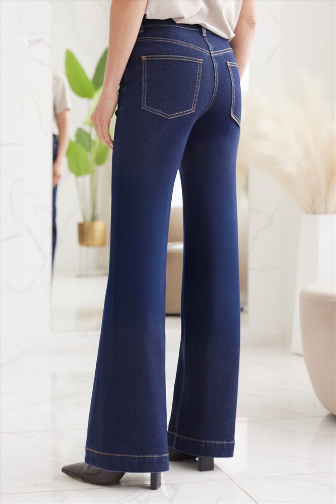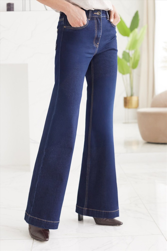 За счет универсального кроя - плотное прилегание в верхней части и свобода внизу, джинсы эффектно подчеркивают фигуру, не акцентируя внимания на недостатках. Модный силуэт джинс придает новизну и актуальность образу, даже в комплекте с базовой футболкой. На джинсах заглажены легкие стрелки спереди и сзади по центру ноги.