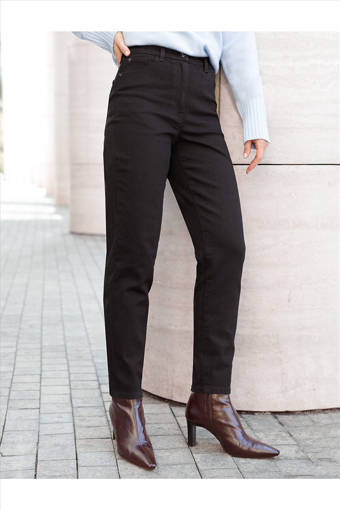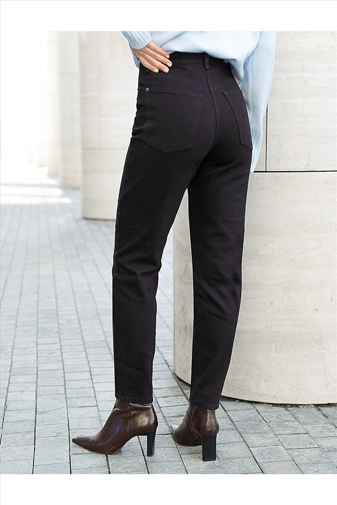 В синем цвете ткань немного толще, чем голубой и черный цвета. Свободные штанины вверху, заужаются к низу, делая силуэт стройнее, открывая нижнюю часть лодыжки.