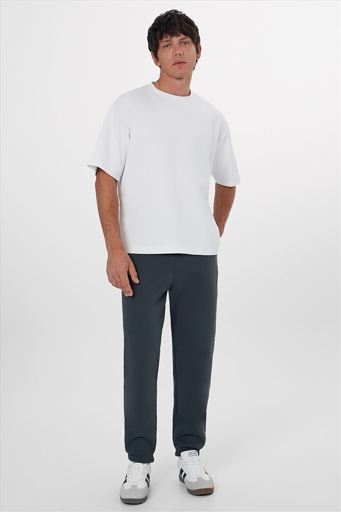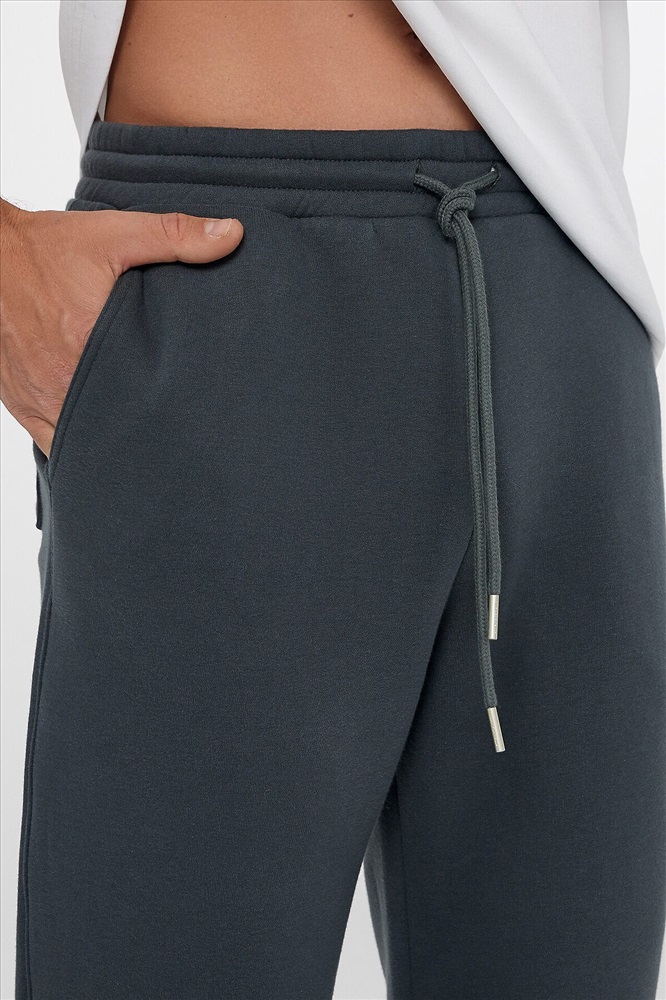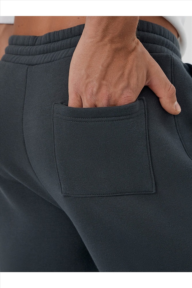 Джогеры прямые, зауженные к низу. Пояс отрезной с эластичной тесьмой внутри. С внутренней стороны пояса пробиты петли и втянут шнур с эглетами (8EКXWCp-1). В боковых швах обработаны карманы - хулиганы, подкладка карман из кулирки. На задней правой половинке накладной карман, по заданию. Нижние срезы брюк обработаны швом вподгибку с эластичной тесьмой внутри.