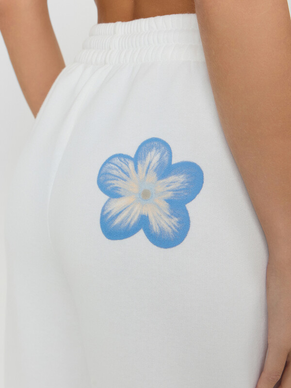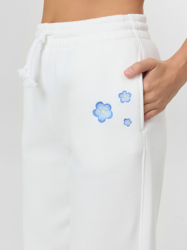 Джогеры свободного силуэта. Пояс цельнокроеный, с втачной эластичной тесьмой 50RV, по центру пробиты петли и вставлен шнур круглый 8м с узлами на концах (8КXWС-1). В боковых швах карманы. Низ изделия обработан швом в подгибку с втачной эластичной тесьмой 40RV.