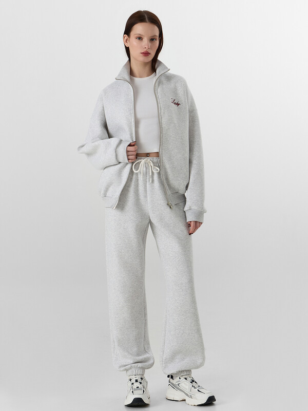 Джогеры прямого силуэта с карманами в боковых швах. Пояс цельнокроеный с внутренней эластичной тесьмой 40RV. С внешней стороны пояса пробиты петли и втянут шнур 8мм 8EKXWC-1 с эглетом. Низ изделия обработан швом в подгибку, внутрь застрочена эластичная тесьма 30RV.
