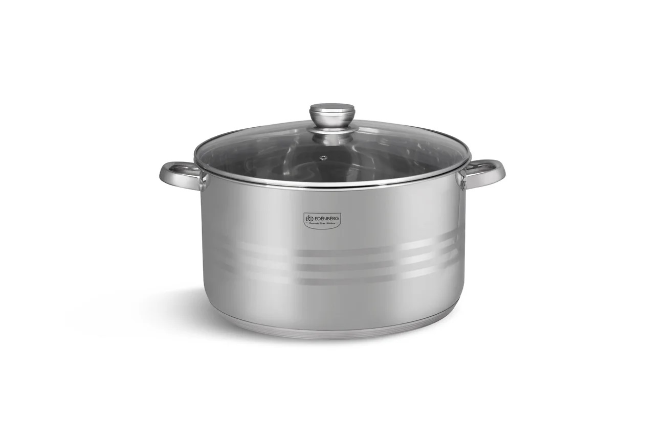 Производитель: Edenberg; Артикул поставщика: EB-3023 ; Год: 2024 Кастрюля с крышкой Объем: 20.3 л Диаметр: 36 см Форма: круглая Материал: нержавеющая сталь Крышка: нержавеющая сталь, стекло Ручка: нержавеющая сталь Тип плиты: для всех типов, включая индукционные