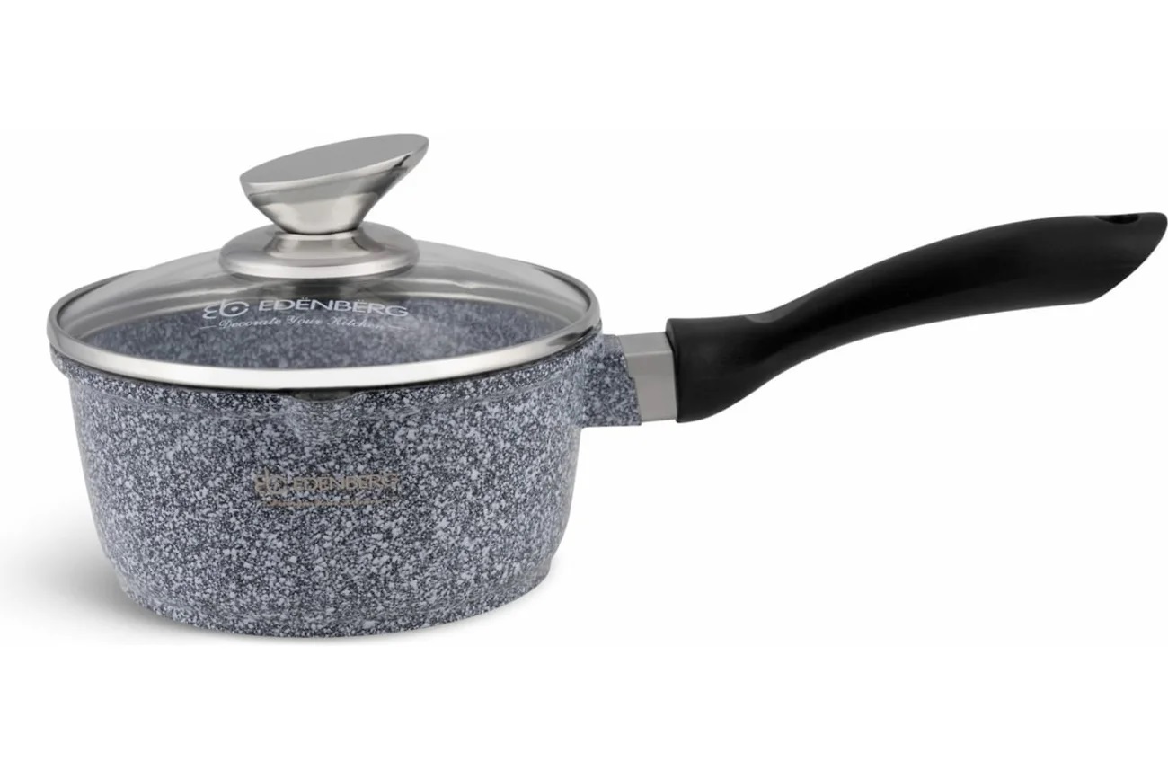 Тип ковш, размер 16 см, объем 1.3 л, материал алюминий, материал крышки стекло, ручки бакелитовые, антипригарное покрытие каменное (мрамор, гранит), дополнительно совместимость с индукцией, отверстие для пара, страна происхождения бренда Польша, выполнен в современном дизайне.
