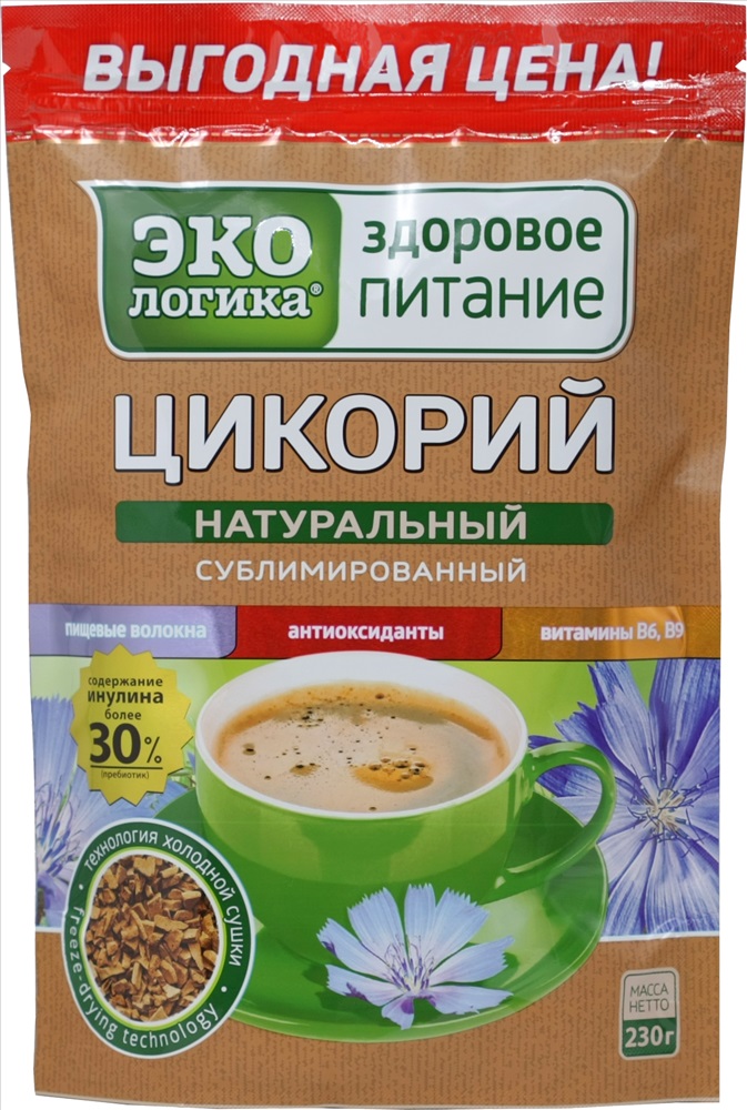 Цикорий натуральный растворимый. Макси-формат любимого напитка!Цикорий незаменим в период умственных и физических нагрузок как бодрящий укрепляющий напиток. По вкусу готовый напиток напоминает хороший кофе, но при этом не содержит кофеин. После добавления небольшого количества молока вы сможете наслаждаться любимым «капучино» без вреда для здоровья!