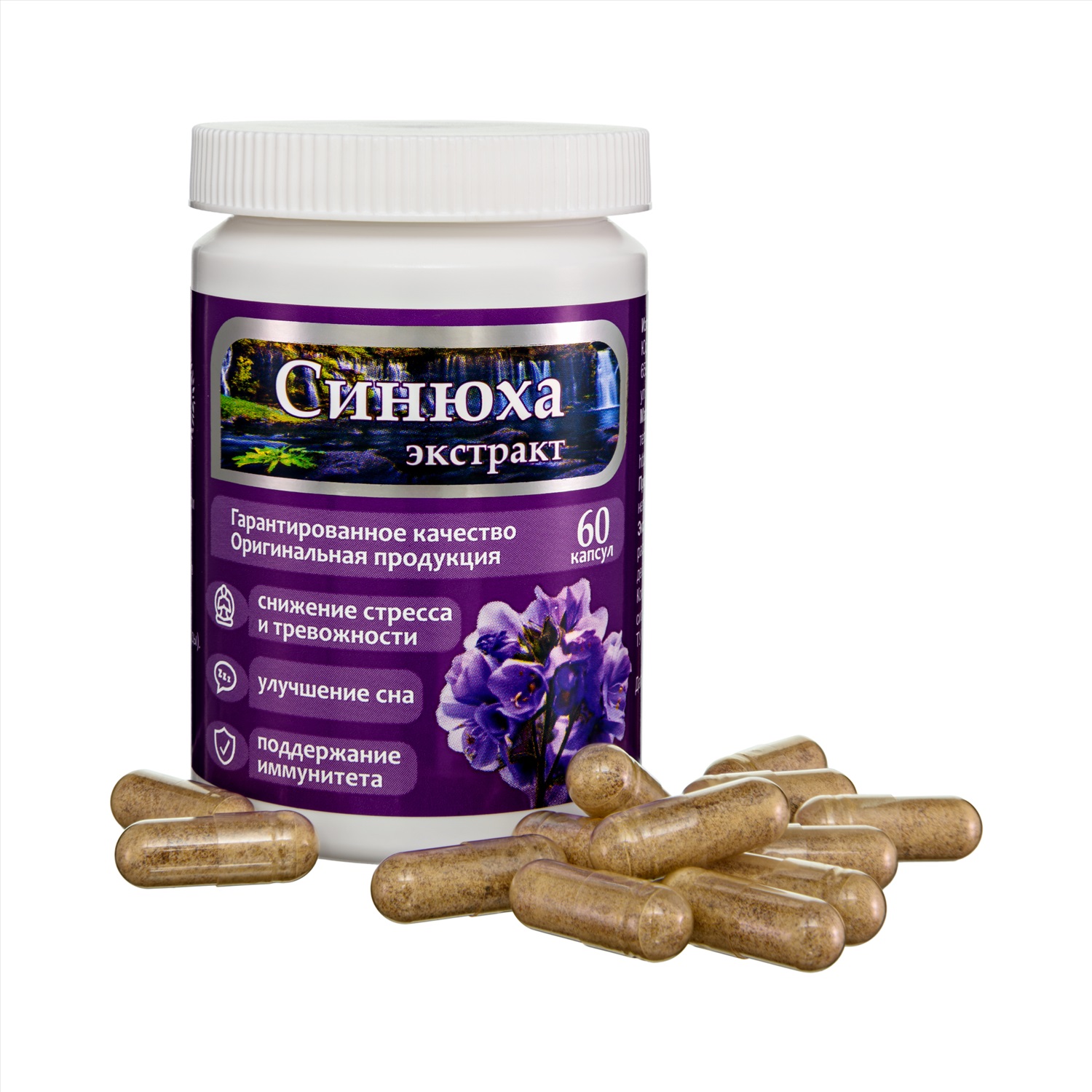 Экстракт синюхи голубой — оказывает расслабляющее и успокаивающее действие. Комплексное воздействие на нервную систему, укрепление иммунитета.