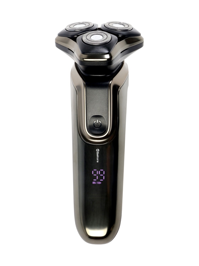 Габариты: 15,5 x 8 x 21,5 Страна: Китай В боксе: 12 шт Состав: Металл, пластик Материалы: металл, пластик Фасовка: по 1 шт Индивидуальная упаковка: Цветная коробка Сертификат: ЕАС Тип питания: От аккумулятора Цвет: Чёрный Для кого: Для мужчины Мощность, Вт: 5 Количество бритвенных головок: 3 Гарантийный срок, мес.: 12 Время автономной работы, мин: 60 Время заряда аккумулятора, мин: 90 Система бритья: Роторная Дисплей: Да Материал лезвия: Алюминиевый сплав Время заряда аккумулятора, ч: 90 Способ бритья: Сухой / Влажный Дополнительное увлажнение: Нет Плавающие головки: Да Область применения: Для бороды и усов Способ чистки: Влажная, Сухая Индикатор: Дисплей, Индикатор заряда батареи Подставка для зарядки: Нет Комплектация: USB-кабель, Защитная крышка, Бритва, Щёточка для чистки лезвий Роторная электробритва с тремя плавающими головками идеально повторяет контуры лица, обеспечивая чистое и ровное бритьё. Благодаря LED-дисплею удобно отслеживать заряд аккумулятора и оставшееся время работы, а встроенный триммер помогает аккуратно корректировать бороду и усы. Прибор работает от аккумулятора, обеспечивая до 60 минут автономного использования. Возможность сухого и влажного бритья делает устройство универсальным для любых условий, а эргономичный чёрный корпус гарантирует комфортный захват и простоту эксплуатации. ПрименениеПодходит для ежедневного ухода за бородой и усами, а также для аккуратной коррекции контуров лица. Универсальная возможность сухого и влажного бритья позволяет использовать бритву как дома, так и в поездках. Простая чистка щёточкой сохраняет эффективность лезвий надолго. КомплектацияДополнительноКомментарии к товару