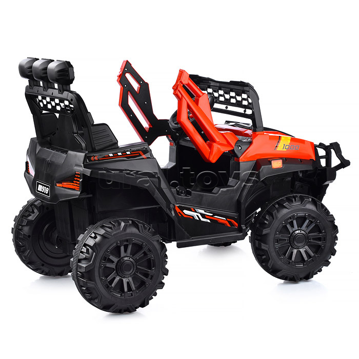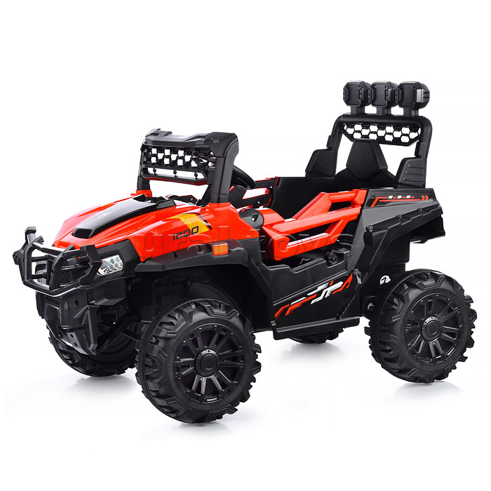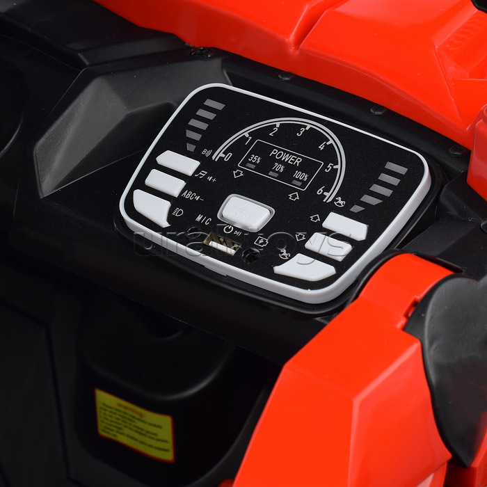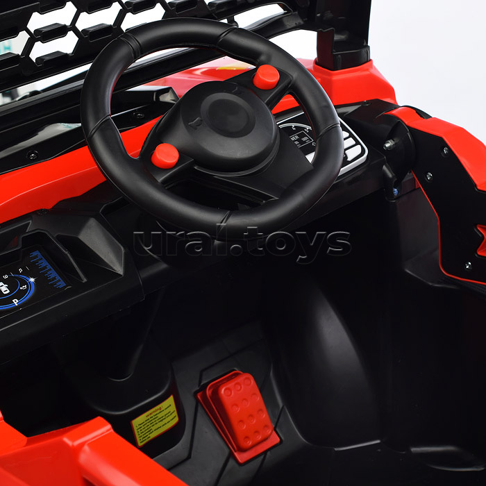 Цвет: Красный Напряжение аккумулятора: 6 Количество мест: 1 Емкость аккумулятора: 4 Возраст: от 3 лет Материал колес: Пластик Свет: Да Звуковые эффекты: Да Количество моторов: 2 Пульт ДУ: Да Максимальная нагрузка: 30 Вид транспорта: Внедорожник Лицензия: Нет Привод полный: Нет Код: 384991 Страна производитель: Китай Размеры упаковки: 100 x 57 x 35 см Количество в коробке: 1 • Размеры машины: 100х67х76 см. • Работает от 2-х аккумуляторов 6V4AH. • Мощность аккумулятора: 20 Вт. • Время зарядки аккумулятора 8-12 ч. • Время работы: 1-2 ч. • Зарядное устройство в комплекте. • Максимальная скорость: 4 км/ч. • Функции: - движение вперёд, назад, осуществляется при помощи педали газа. - при повороте руля, поворачиваются передние колёса. - открывающиеся двери. - машиной можно управлять с пульта. - свет фар. - проигрывает музыкальные мелодии. - сигнал клаксона. - USB-разъём. - AUX. - функция "качели" • Пластиковое сиденье с ремнём безопасности. • Максимально допустимый вес: 35 кг. • Пульт работает от 2-х батареек "ААА" (не входят в комплект) • Материал: пластик. • Пластиковые колёса (d=28 см.) • Ширина колёс: 12 см. • Дорожный просвет: 16 см. • Соответствует требованиям безопасности и стандартам качества продукции. • Для детей от 3-х до 6 лет. Комментарии к товару