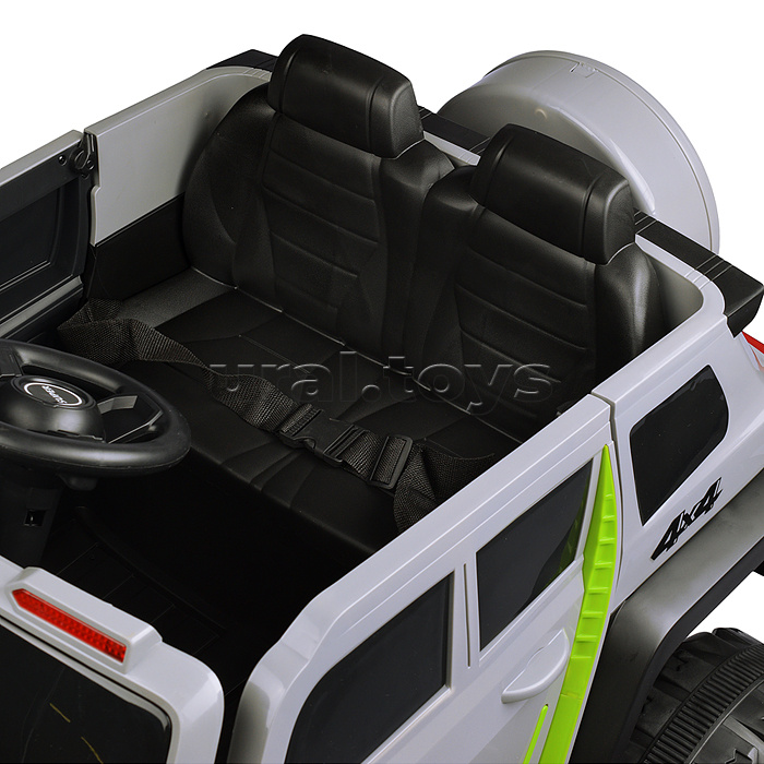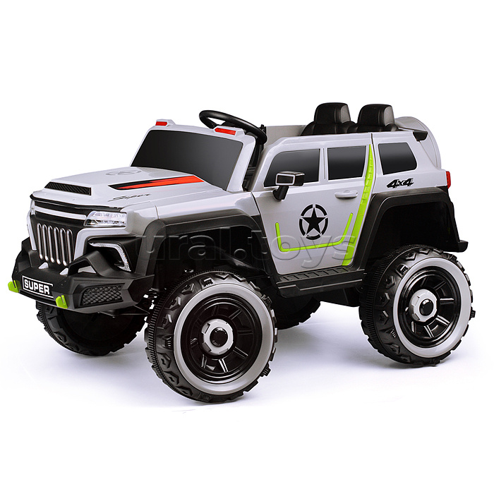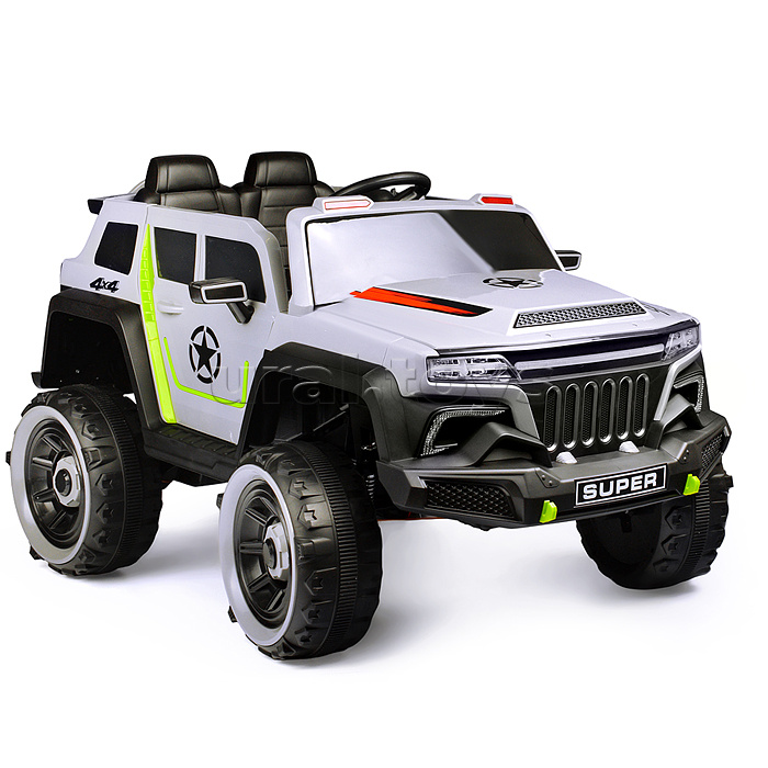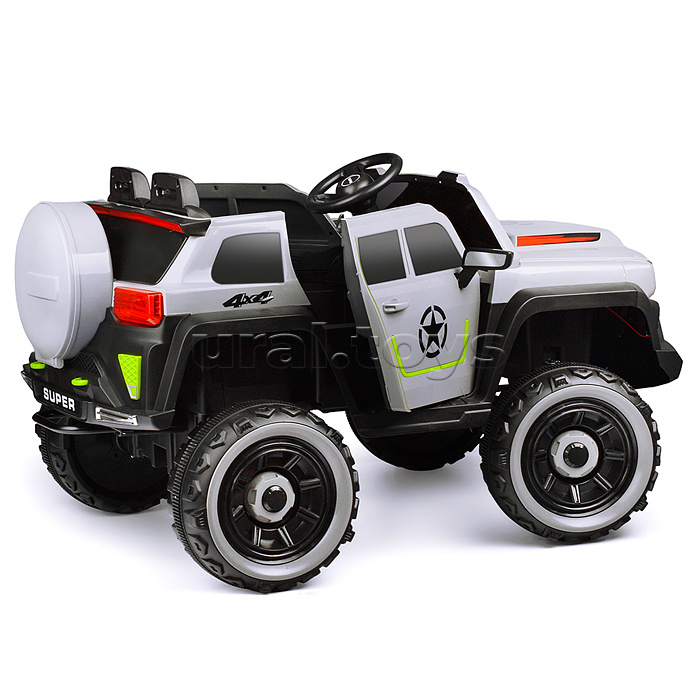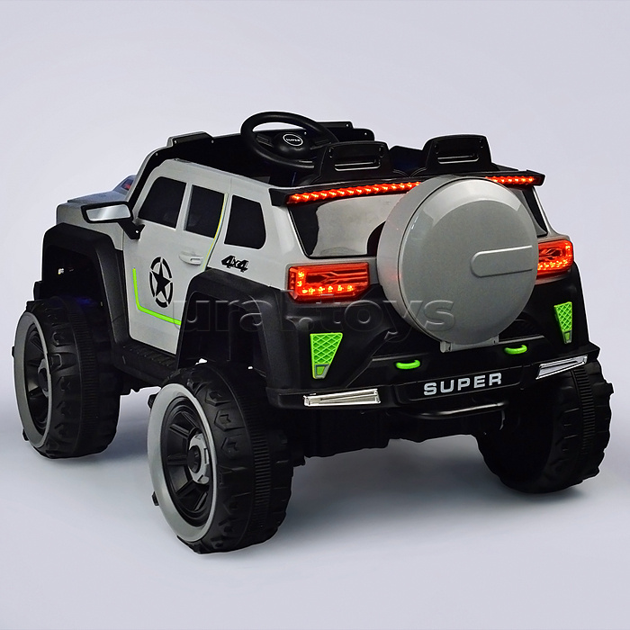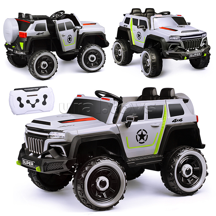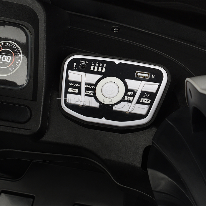Цвет: Серый Напряжение аккумулятора: 12 Количество мест: 1 Емкость аккумулятора: 7 Возраст: от 3 лет Материал колес: Пластик Свет: Да Звуковые эффекты: Да Количество моторов: 4 Пульт ДУ: Да Максимальная нагрузка: 30 Вид транспорта: Внедорожник Лицензия: Нет Привод полный: Да Код: 424090 Страна производитель: Китай Размеры упаковки: 124 x 76 x 55 см Количество в коробке: 1 • Размеры машины: 135х82х65 см. • Работает от аккумулятора 12V7AH. • Мощность аккумулятора: 20 Вт. • Время зарядки аккумулятора 8-12 ч. • Время работы: 1-2 ч. • Зарядное устройство в комплекте. • Максимальная скорость: 5 км/ч. • Функции: - движение вперёд, назад, осуществляется при помощи педали газа. - при повороте руля, поворачиваются передние колёса. - машиной можно управлять с пульта. - открывающиеся двери. - свет фар (вкл, выкл., мигание) - клаксон. - проигрывает музыкальные мелодии (фрагменты). - регулировка громкости. - USB-разъём. - AUX. - bluetooth. - индикатор заряда батареи. - режим качели. • Функции пульта: - вперёд, назад. - повороты влево, вправо. - 2 скорости. - режим качели. - ручной тормоз. • Пульт работает от 2-х батареек "ААА" (не входят в комплект) • Полный привод на все колёса. • Характеристики моторчиков: - класс мотора: 390. - рабочее напряжение: 12V. - частота вращения мотора: 15000 об/мин. - тип мотора: коллекторный. • Пластиковое сиденье (41х18.5 см.) • Пластиковая спинка (37.5х25 см.) • 2-х точечный ремень безопасности. • Максимально допустимый вес: 30 кг. • Материал: пластик. • Пластиковые колёса (d=32 см.) • Ширина колёс: 13 см. • Дорожный просвет: 23.5 см. • Вес игрушки: 23 кг. • Соответствует требованиям безопасности и стандартам качества продукции. • Для детей от 3-х лет. Комментарии к товару