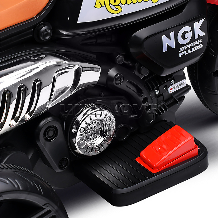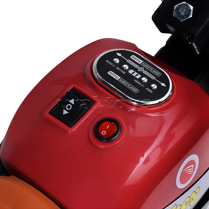 • Размеры игрушки: 77х42х56 см. • Работает от аккумулятора 6V4AH. • Мощность аккумулятора: 20 Вт. • Время зарядки: 8-12 часов. • Время работы: 1.5-2 часа. • Зарядное устройство в комплекте (Model: HD-058C; Input: 110-220V (50-60 Hz); Output: 6V 500mA). • Максимальная скорость: 4 км\ч. • Функции: - движение вперёд и назад (осуществляется при нажатии на педаль газа). - при повороте руля поворачивается переднее колесо. - проигрывает музыкальные мелодии (фрагменты). - звук клаксона. - регулировка громкости. - свет фары. - задний привод на правое колесо. • Максимальная нагрузка: 25 кг. • Вес игрушки: 5.7 кг. • Пластиковые колёса (d=21 см.) • Высота от пола до сиденья: 32 см. • Дорожный просвет: 7 см. • Ширина руля: 46 см. • Материал: пластик. • Игрушка поставляется в разобранном виде. Инструкция по сборке прилагается. • Соответствует требованиям безопасности продукции. • Для детей от 3-х до 6 лет.