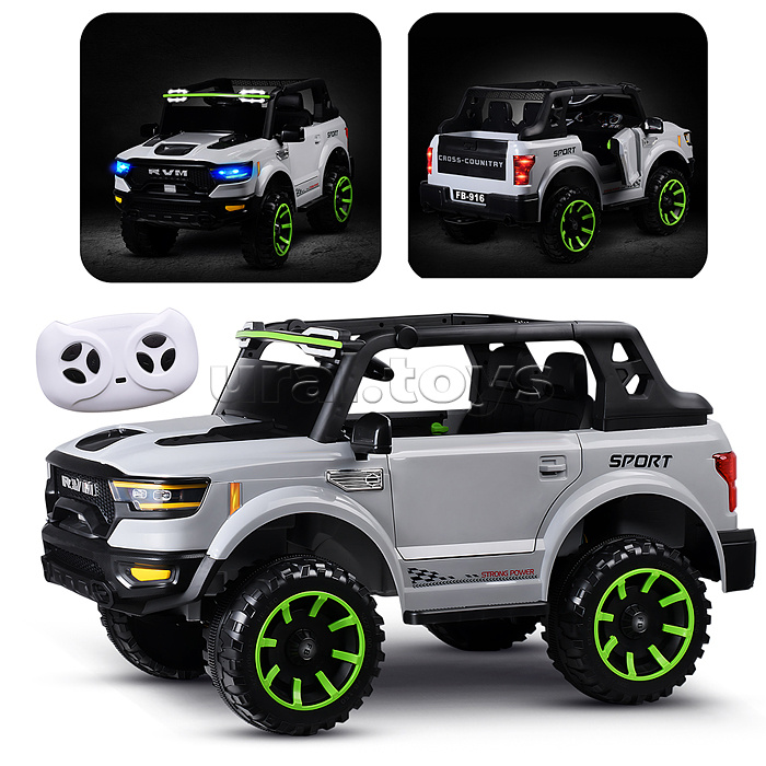 Цвет: Серый Напряжение аккумулятора: 6 Количество мест: 1 Емкость аккумулятора: 7 Возраст: от 3 лет Материал колес: Пластик Свет: Да Звуковые эффекты: Да Количество моторов: 2 Пульт ДУ: Да Максимальная нагрузка: 30 Вид транспорта: Внедорожник Лицензия: Нет Привод полный: Нет Код: 485036 Штрихкод: 6904111606585 Страна производитель: Китай Размеры упаковки: 120 x 62 x 48 см Количество в коробке: 1 • Размеры машины: 120х55х66 см. • Время зарядки аккумулятора 8-12 ч. • Время работы: 1-2 ч. • Зарядное устройство в комплекте (Model: YM-808; Imput: AC100-240V; Output: DC12V1000mA.) • Максимальная скорость: 3,5 км/ч. • Полный привод. • Функции: - движение вперёд, назад, осуществляется при помощи педали газа. - при повороте руля, поворачиваются передние колёса. - машиной можно управлять с пульта. - свет фар (вкл., выкл., мигание) - проигрывает музыкальные мелодии (4 фрагмента). - USB-разъём. • Песни на иностранном языке. • Регулировка громкости. • Индикатор заряда аккумулятора. • Функции пульта: - вперёд, назад. - повороты влево, вправо. - ручной тормоз. • Пластиковое сиденье (43х19 см.) • Высота от пола до сиденья: 40 см. • Пульт работает от 2-х батареек "ААА" (не входят в комплект) • Материал: пластик. • Пластиковые колёса (d=29 см.) • Ширина колёс: 12 см. • Вес игрушки: 20.3 кг. • Соответствует требованиям безопасности и стандартам качества продукции. • Максимально допустимый вес: 30 кг. • Для детей от 3-х до 6 лет. Комментарии к товару