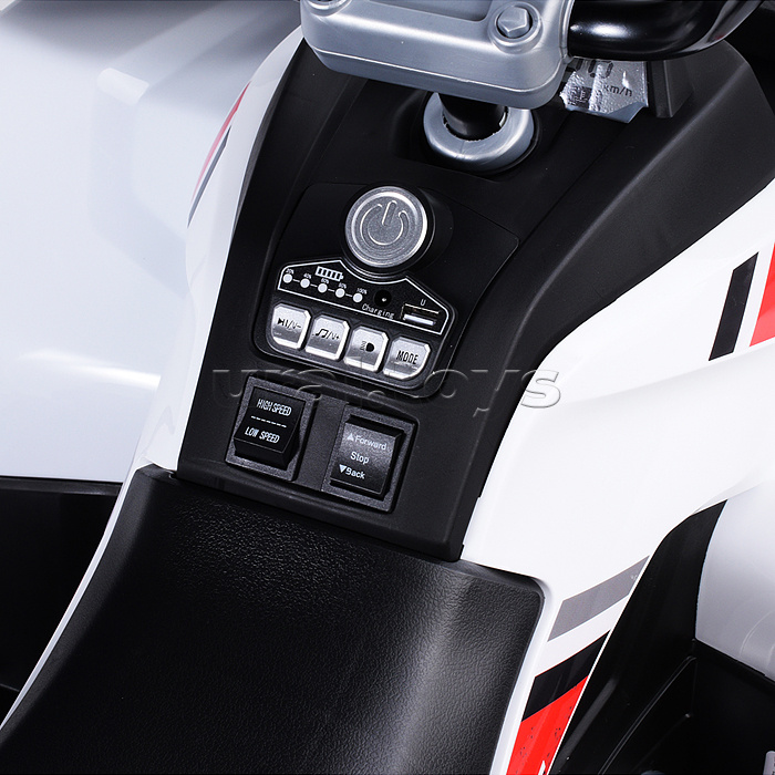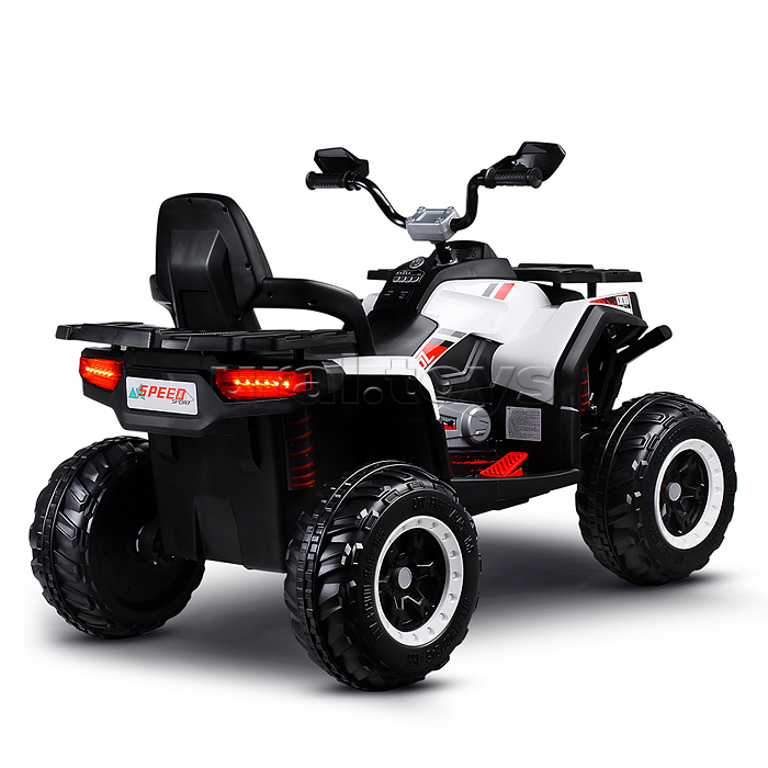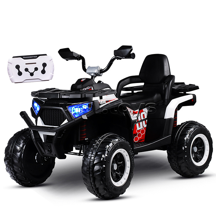 Цвет: Черный Напряжение аккумулятора: 12 Количество мест: 1 Емкость аккумулятора: 7 Возраст: от 3 лет Материал колес: Пластик Свет: Да Звуковые эффекты: Да Количество моторов: 4 Пульт ДУ: Да Максимальная нагрузка: 30 Вид транспорта: Квадроцикл Лицензия: Нет Привод полный: Да Код: 485061 Штрихкод: 6904111585989 Страна производитель: Китай Размеры упаковки: 104 x 65.5 x 49.8 см Количество в коробке: 1 • Размеры машины: 117х68х75 см. • Работает от аккумулятора 12V7AH. • Мощность аккумулятора: 20 Вт. • Время зарядки аккумулятора 10-12 ч. • Время работы: 1-2 ч. • Зарядное устройство в комплекте (Model: HS1201000V; Imput: 100-240V; Output: 12V.) • Максимальная скорость: 3,5 км/ч. • Полный привод. • Функции: - движение вперёд, назад, осуществляется при помощи педали газа. - при повороте руля, поворачиваются передние колёса. - машиной можно управлять с пульта. - свет фар (вкл., выкл., мигание) - проигрывает музыкальные мелодии (4 фрагмента). - USB-разъём. • Песни на иностранном языке. • Регулировка громкости. • Индикатор заряда аккумулятора. • Функции пульта: - вперёд, назад. - повороты влево, вправо. - ручной тормоз. • Пластиковое сиденье (40х20 см.) • Высота от пола до сиденья: 50 см. • Пульт работает от 2-х батареек "ААА" (не входят в комплект) • Материал: пластик. • Пластиковые колёса (d=35 см.) • Ширина колёс: 15 см. • Вес игрушки: 18,6 кг. • Соответствует требованиям безопасности и стандартам качества продукции. • Максимально допустимый вес: 30 кг. • Для детей от 3-х до 6 лет. Комментарии к товару