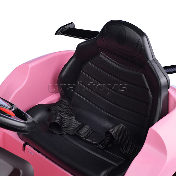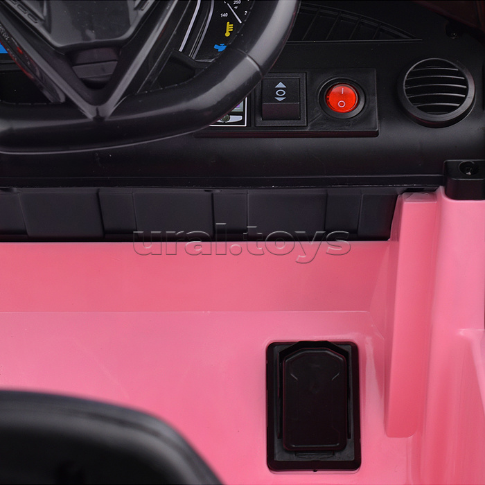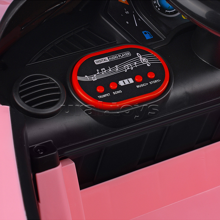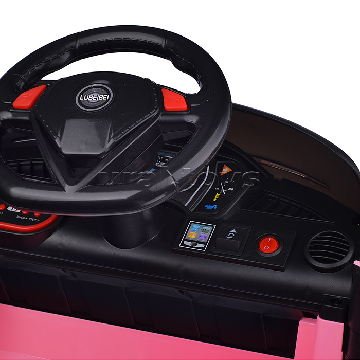 • Размеры машины: 100х52х42 см. • Работает от аккумулятора 6V4.5AH. • Мощность аккумулятора: 20 Вт. • Время зарядки аккумулятора 8-12 ч. • Время работы: 1-2 ч. • Зарядное устройство в комплекте. • Максимальная скорость: 5 км/ч. • Функции: - движение вперёд, назад, осуществляется при помощи педали газа. - при повороте руля, поворачиваются передние колёса. - машиной можно управлять с пульта. - открывающиеся двери. - свет фар. - проигрывает музыкальные мелодии (фрагменты). - сигнал клаксона. - индикатор заряда батареи. - регулировка громкости. • Функции пульта: - вперёд, назад. - повороты влево, вправо. - 3 скорости. - ручной тормоз. - "качели". • Задний привод на одно колесо. • Пластиковое сиденье с двухточечным ремнём безопасности (24х17 см.) • Максимально допустимый вес: 30 кг. • Пульт работает от 2-х батареек "ААА" (не входят в комплект) • Для установки связи с пультом управления нужно в течение 3-х секунд удерживать кнопку "М". • Материал: пластик. • Пластиковые колёса (d=21 см.) • Ширина колёс: 7.5 см. • Дорожный просвет: 9 см. • Вес игрушки: 8.3 кг. • Соответствует требованиям безопасности и стандартам качества продукции. • Для детей от 3-х лет.