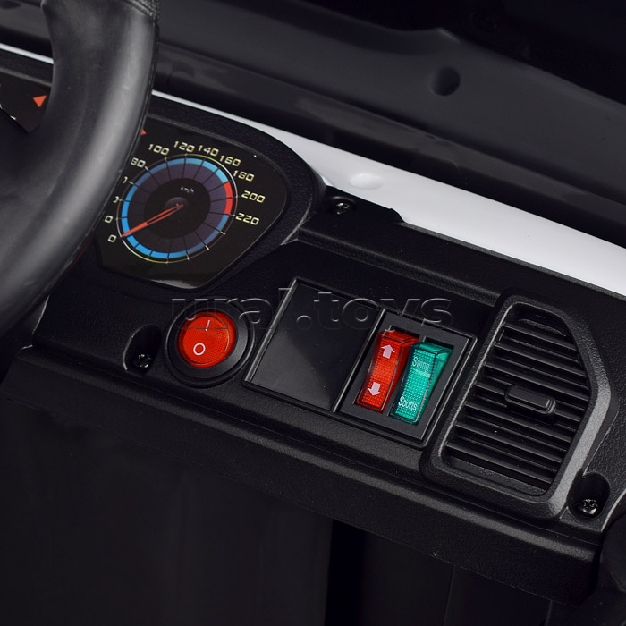• Размеры машины: 100х63х60 см. • Работает от аккумулятора 12V4.5AH. • Мощность аккумулятора: 20 Вт. • Время зарядки аккумулятора 8-12 ч. • Время работы: 1-2 ч. • Зарядное устройство в комплекте. • Максимальная скорость: 4 км/ч. • Функции: - движение вперёд, назад, осуществляется при помощи педали газа. - при повороте руля, поворачиваются передние колёса. - открывающиеся двери. - машиной можно управлять с пульта. - свет фар. - проигрывает музыкальные мелодии. - сигнал клаксона. - USB-разъём. - AUX. • Пластиковое сидение с ремнём безопасности. • Максимально допустимый вес: 25 кг. • Пульт работает от 2-х батареек "ААА" (не входят в комплект) • Материал: пластик. • Пластиковые колёса (d=30 см.) • Ширина колёс: 12 см. • Дорожный просвет: 22 см. • Соответствует требованиям безопасности и стандартам качества продукции. • Для детей от 3-х до 6 лет.