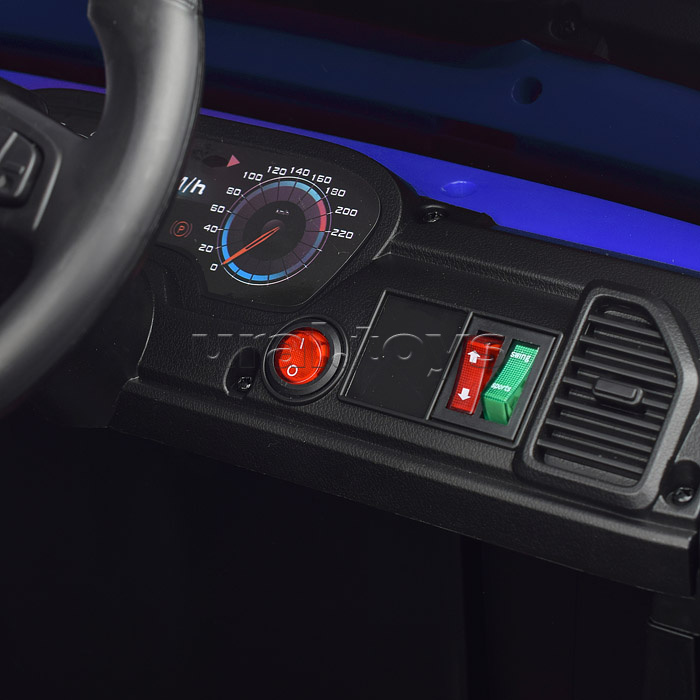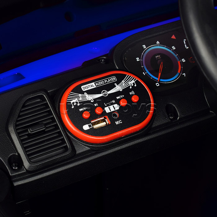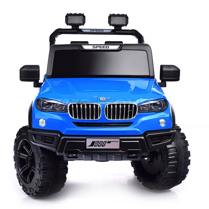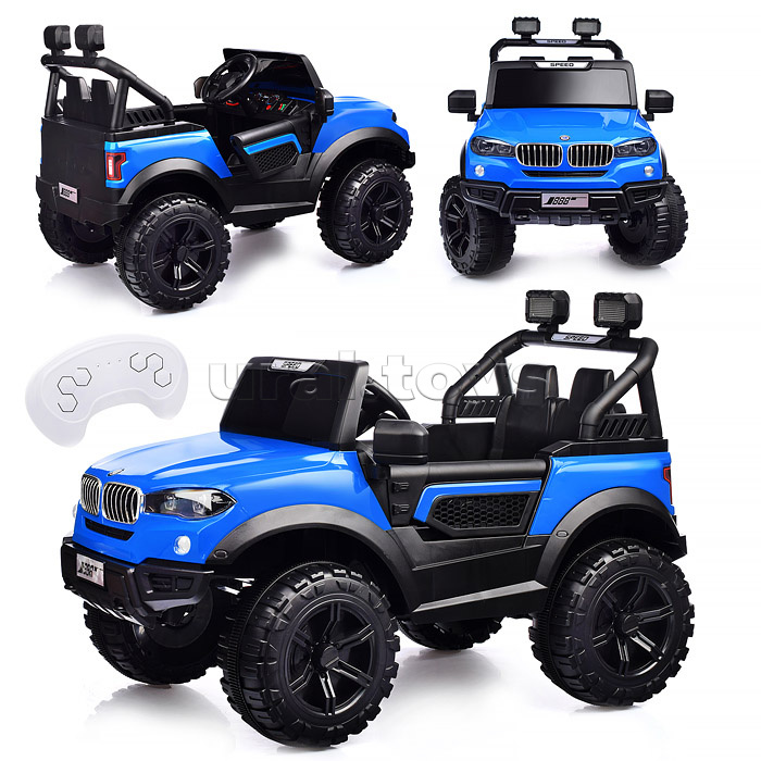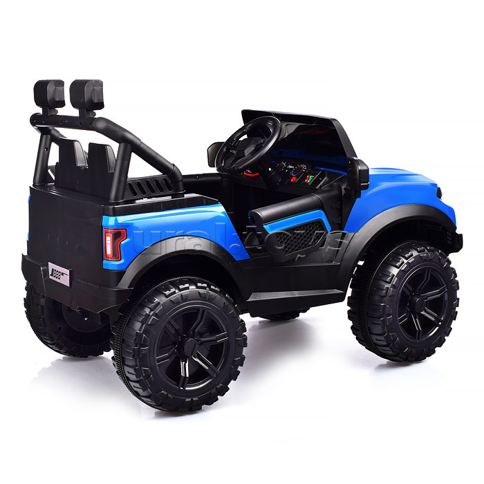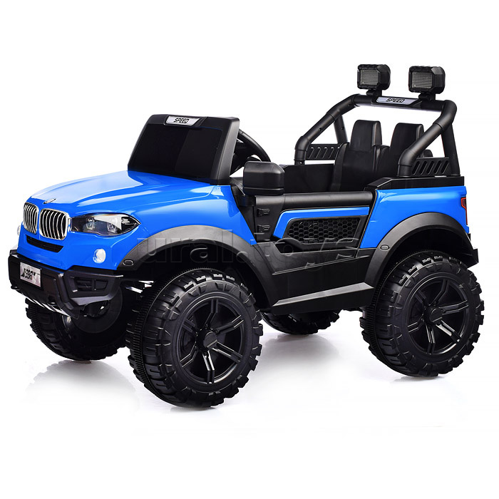 Цвет: Синий Напряжение аккумулятора: 12 Емкость аккумулятора: 4.5 Возраст: от 3 лет Материал колес: Пластик Свет: Да Звуковые эффекты: Да Количество моторов: 2 Пульт ДУ: Да Максимальная нагрузка: 30 Вид транспорта: Внедорожник Лицензия: Нет Код: 384999 Страна производитель: Китай Размеры упаковки: 116.5 x 59.5 x 35.5 см Количество в коробке: 1 • Размеры машины: 100х63х60 см. • Работает от аккумулятора 12V4.5AH. • Мощность аккумулятора: 20 Вт. • Время зарядки аккумулятора 8-12 ч. • Время работы: 1-2 ч. • Зарядное устройство в комплекте. • Максимальная скорость: 4 км/ч. • Функции: - движение вперёд, назад, осуществляется при помощи педали газа. - при повороте руля, поворачиваются передние колёса. - открывающиеся двери. - машиной можно управлять с пульта. - свет фар. - проигрывает музыкальные мелодии. - сигнал клаксона. - USB-разъём. - AUX. • Пластиковое сидение с ремнём безопасности. • Максимально допустимый вес: 25 кг. • Пульт работает от 2-х батареек "ААА" (не входят в комплект) • Материал: пластик. • Пластиковые колёса (d=30 см.) • Дорожный просвет: 22 см. • Соответствует требованиям безопасности и стандартам качества продукции. • Для детей от 3-х лет. Комментарии к товару
