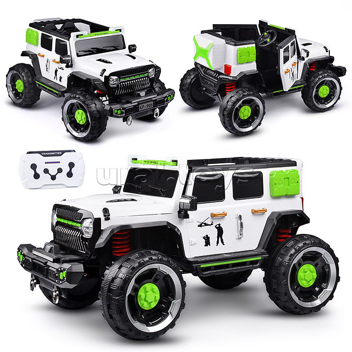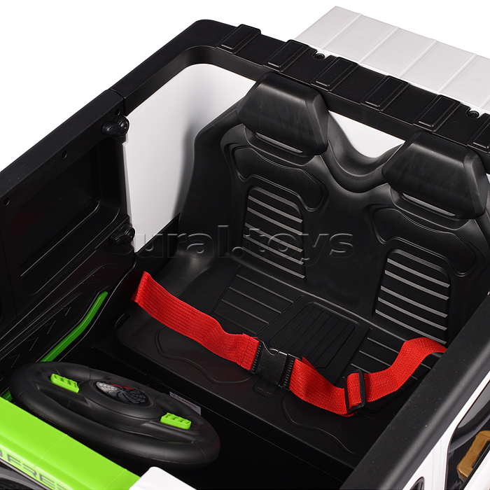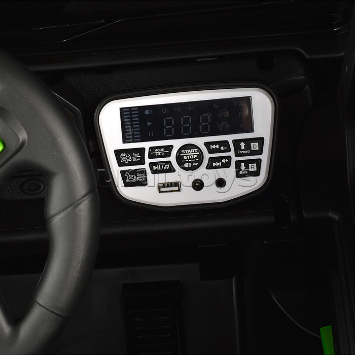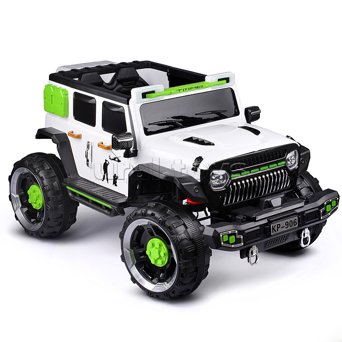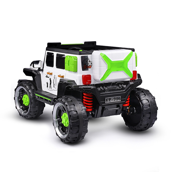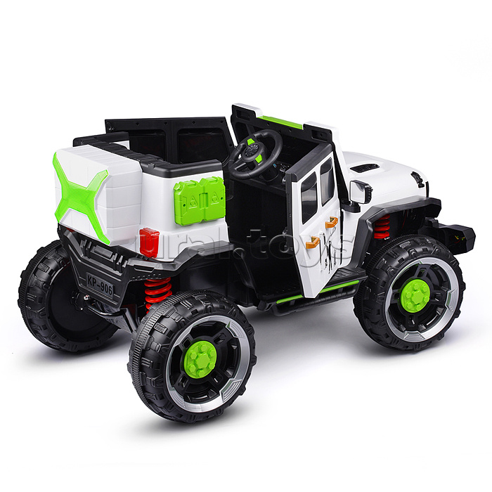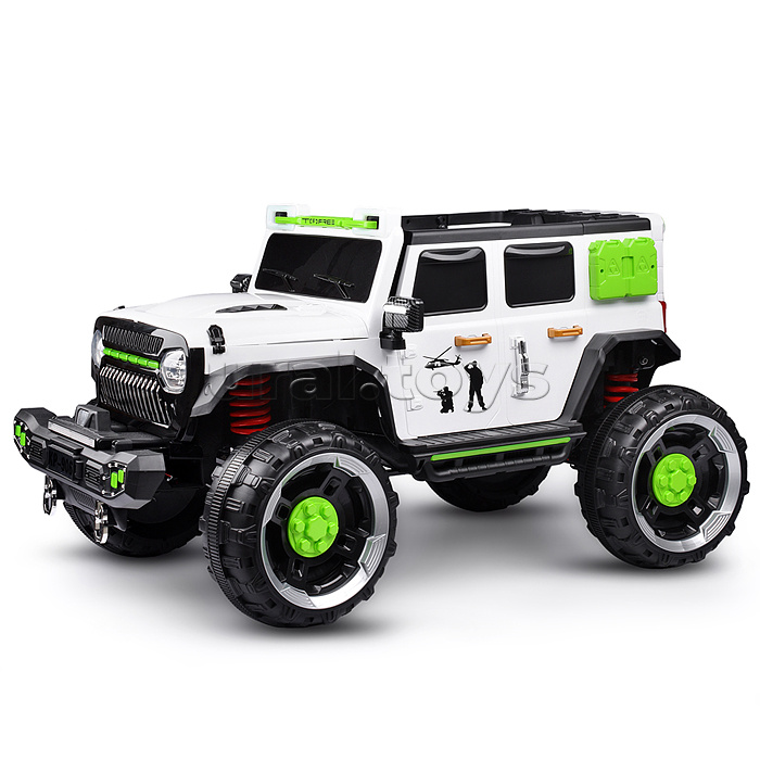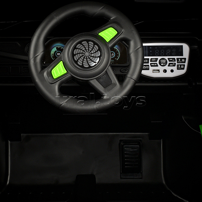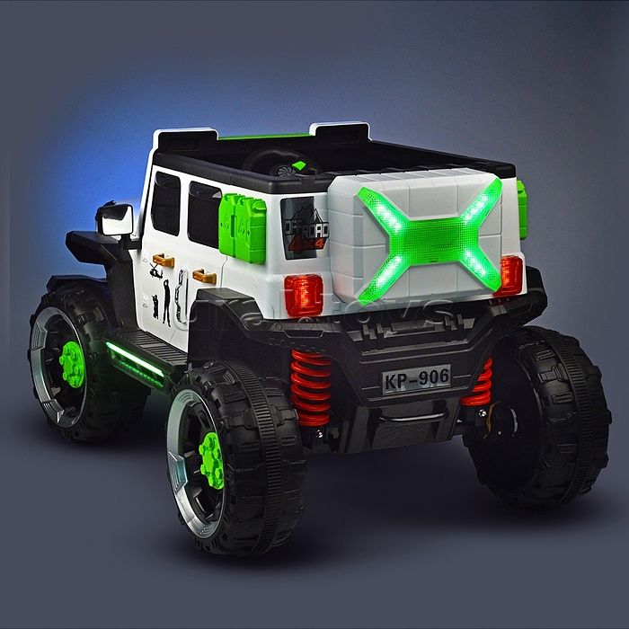 Цвет: Белый Напряжение аккумулятора: 12 Количество мест: 1 Емкость аккумулятора: 7 Возраст: от 3 лет Материал колес: Пластик Свет: Да Звуковые эффекты: Да Количество моторов: 4 Пульт ДУ: Да Максимальная нагрузка: 30 Вид транспорта: Внедорожник Лицензия: Нет Привод полный: Да Код: 424089 Штрихкод: 6978459006062 Страна производитель: Китай Размеры упаковки: 115 x 75 x 62 см Количество в коробке: 1 • Размеры машины: 132х81х76 см. • Работает от аккумулятора 12V7AH (расположен под капотом). • Мощность аккумулятора: 20 Вт. • Время зарядки аккумулятора 8-12 ч. • Время работы: 1-2 ч. • Зарядное устройство в комплекте. • Максимальная скорость: 5 км/ч. • Функции: - движение вперёд, назад, осуществляется при помощи педали газа. - при повороте руля, поворачиваются передние колёса. - машиной можно управлять с пульта. - открывающиеся двери. - открывающийся капот. - свет фар (вкл, выкл., мигание) - клаксон. - проигрывает музыкальные мелодии (фрагменты). - регулировка громкости. - USB-разъём. - AUX. - bluetooth. - гнездо для зарядки на приборной панели. - индикатор заряда батареи. - режим качели. • Функции пульта: - вперёд, назад. - повороты влево, вправо. - 3 скорости. - режим качели. - ручной тормоз. • Для установки связи с пультом управления нужно в течение 3-х секунд удерживать кнопку "М". • Пульт работает от 2-х батареек "ААА" (не входят в комплект) • Полный привод на все колёса. • Характеристики моторчиков: - класс мотора: 390. - рабочее напряжение: 12V. - частота вращения мотора: 15000 об/мин. - тип мотора: коллекторный. • Пластиковое сиденье (35х19.5 см.) • Пластиковая спинка (35х27 см.) • 2-х точечный ремень безопасности. • Максимально допустимый вес: 30 кг. • Материал: пластик. • Пластиковые колёса (d=35 см.) • Ширина колёс: 16 см. • Дорожный просвет: 25 см. • Вес игрушки: 32.4 кг. • Соответствует требованиям безопасности и стандартам качества продукции. • Для детей от 3-х лет. Комментарии к товару