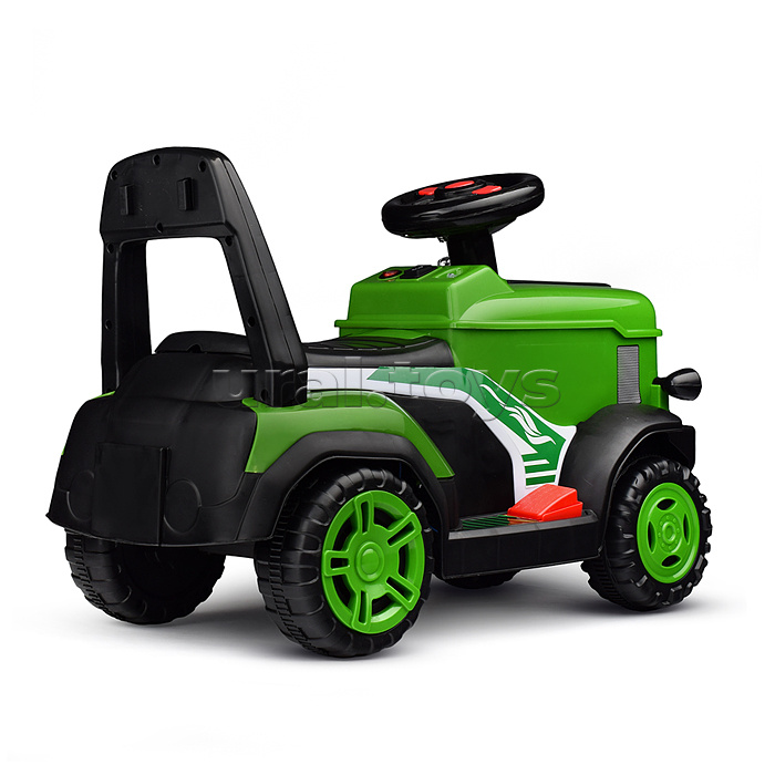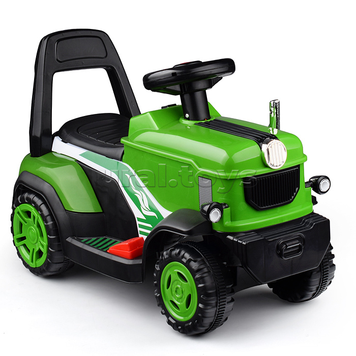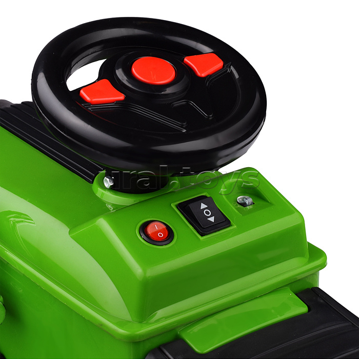 Цвет: Зеленый Напряжение аккумулятора: 6 Количество мест: 1 Емкость аккумулятора: 4.5 Возраст: от 3 лет Материал колес: Пластик Свет: Да Звуковые эффекты: Да Количество моторов: 1 Пульт ДУ: Нет Максимальная нагрузка: 30 Вид транспорта: Трактор Лицензия: Нет Привод полный: Нет Код: 449750 Штрихкод: 6904110084544 Страна производитель: Китай Размеры упаковки: 68 x 36 x 36 см Количество в коробке: 1 • Размеры машины: 66х34х42 см. • Работает от аккумулятора 6V4AH. • Мощность аккумулятора: 20 Вт. • Время зарядки аккумулятора 8-10 ч. • Время работы: 1-2 ч. • Зарядное устройство в комплекте. • Максимальная скорость: 3 км/ч. • Функции: - движение вперёд, назад, осуществляется при помощи педали газа. - при повороте руля, поворачиваются передние колёса. - 3 мелодии. - подсветка капота. • Пластиковое сиденье (20х14 см.) • Максимально допустимый вес: 30 кг. • Звук и свет работают от 3-х батареек "АА" (не входят в комплект) • Материал: пластик. • Пластиковые колёса (d задних колёс - 16 см.; d передних колёс - 15 см.) • Ширина колёс: 6 см. • Дорожный просвет: 6 см. • Вес игрушки: 4 кг. • Соответствует требованиям безопасности и стандартам качества продукции. • Для детей от 3-х лет. Комментарии к товару