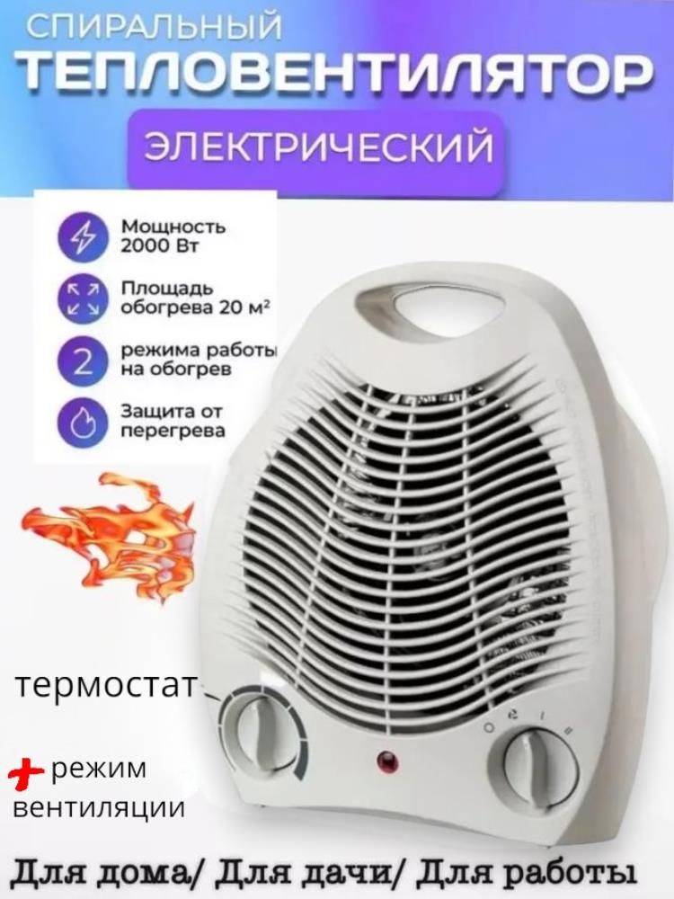 Электротепловентилятор. Вентиляторный термостат подогрева. Номинальная мощность: 2000 вт. Лучшее решение в своем ценовом диапазоне. Комментарии к товару