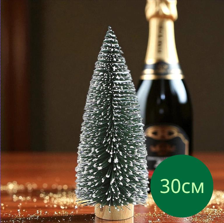 Елочка крепится к круглой деревянной подставке, которая обеспечивает устойчивость украшения.