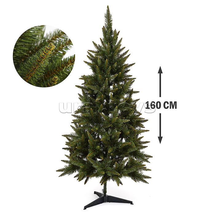 • Высота ёлки: 160 см. • Количество ярусов: 10 • Тип крепления веток: отгибающиеся. • Длина иголок: 4 см. • Материал иголок: ПВХ. • Пластиковая подставка.
