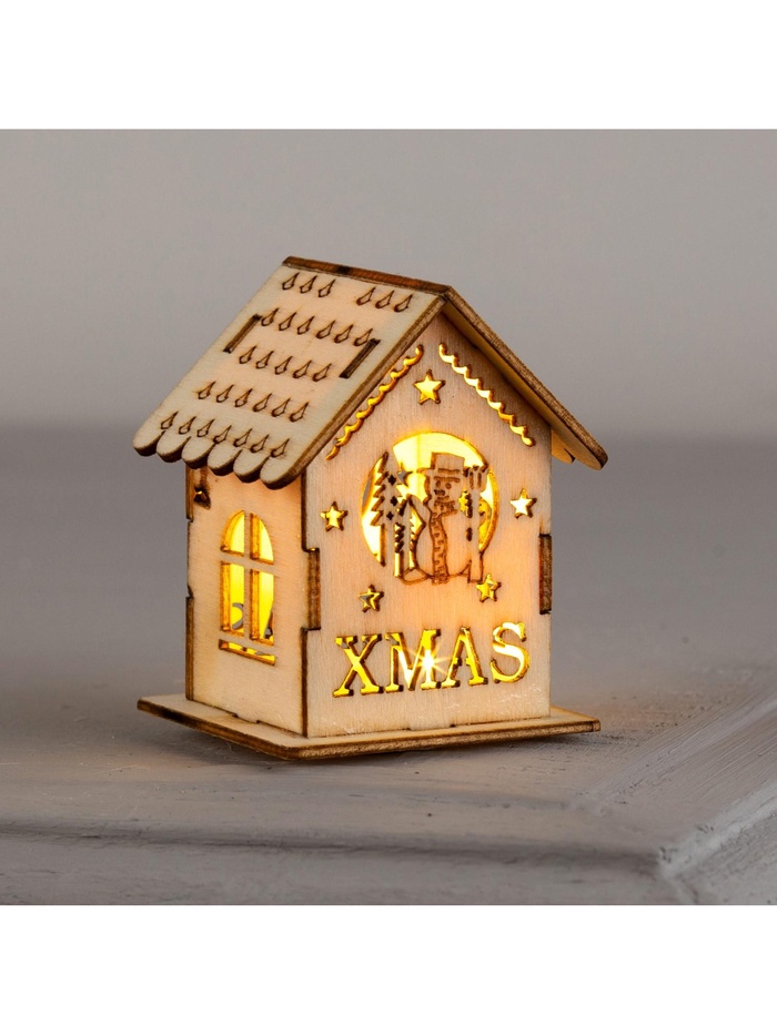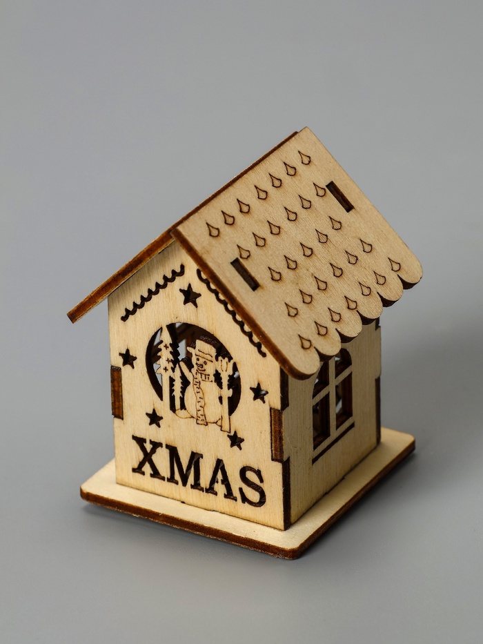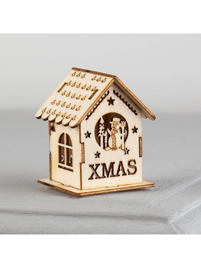 Ёлочная игрушка «Домик со снеговиком», 6×4.5×4.5 см, от батареек, свечение тёплое белое