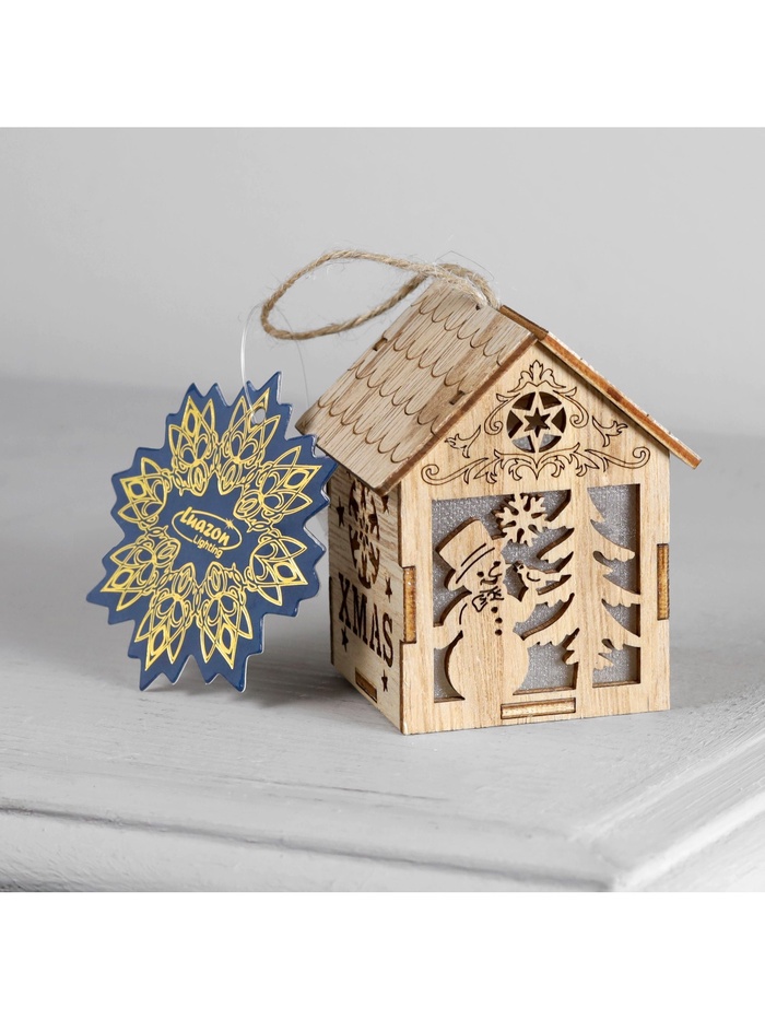 Ёлочная игрушка «Домик со снеговиком», 8×6.5×6 см, от батареек, свечение тёплое белое