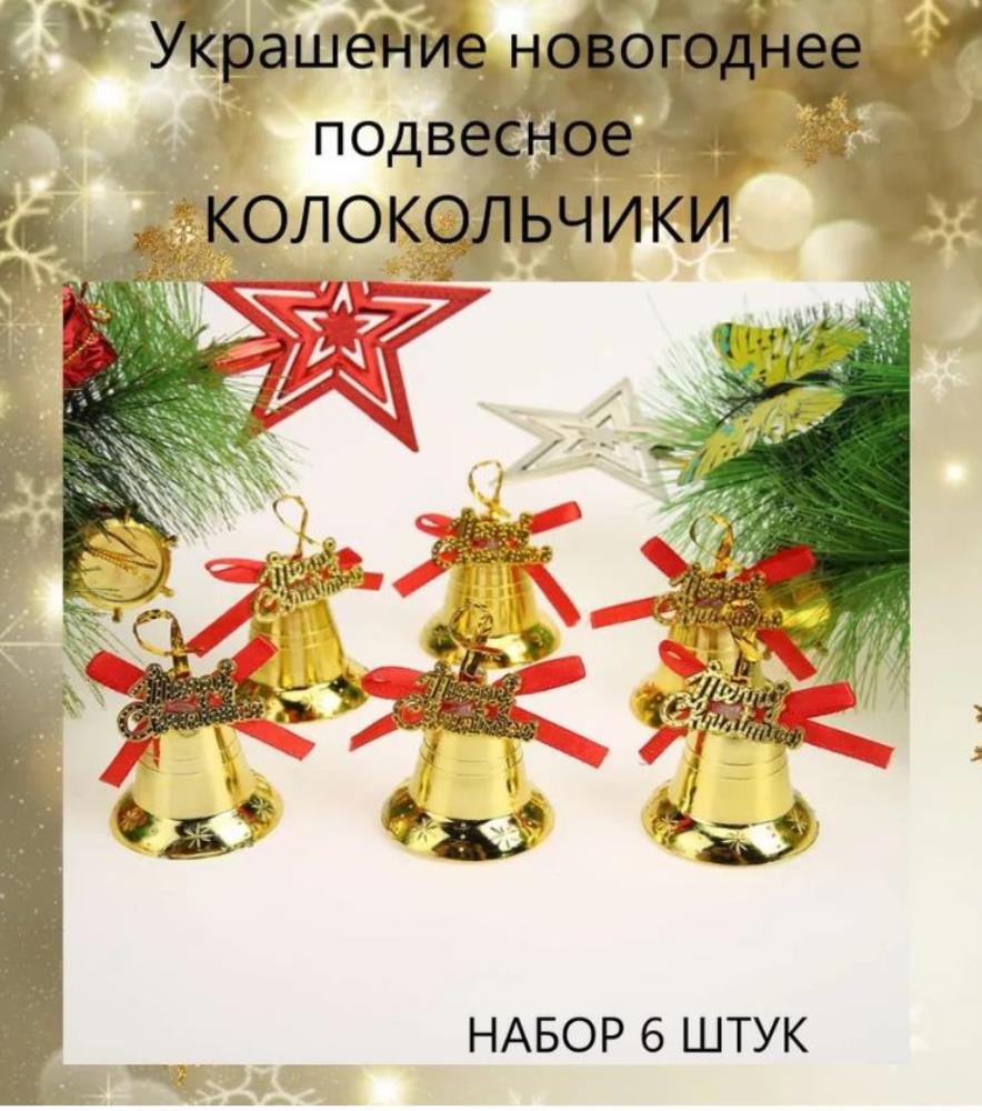 Елочное украшение Колокольчики, набор колокольчиков 6 шт