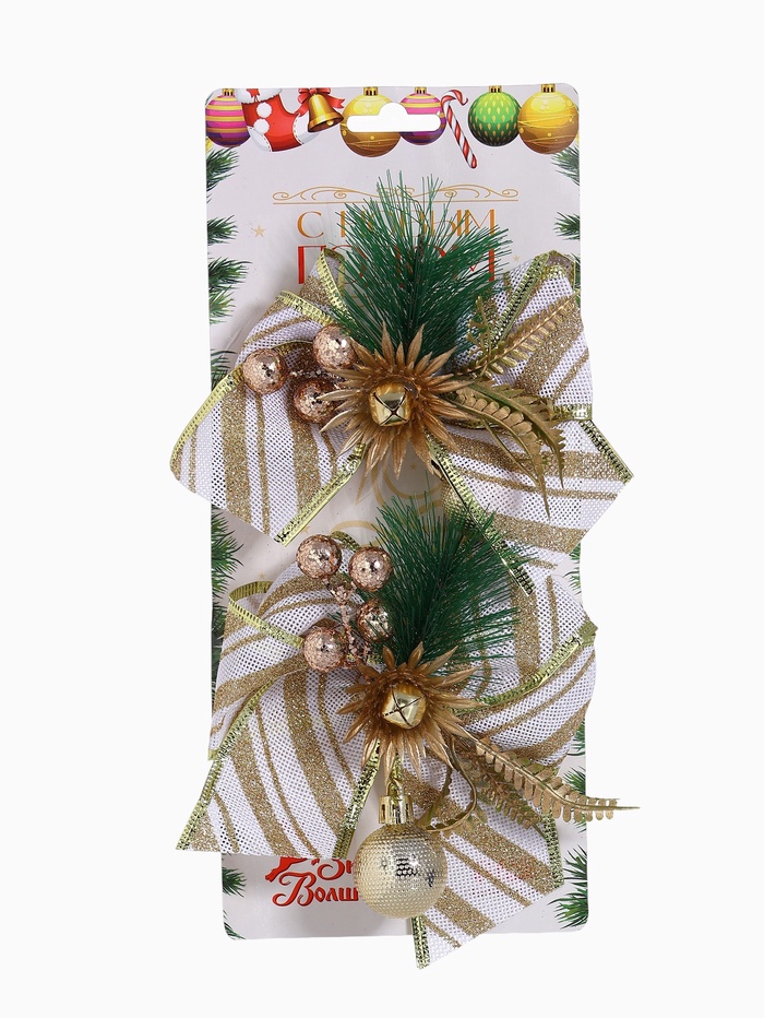 Эти банты добавляют элегантность и праздничный блеск в новогодний интерьер. Их легко сочетать с другими украшениями, формируя изысканный и гармоничный декор.