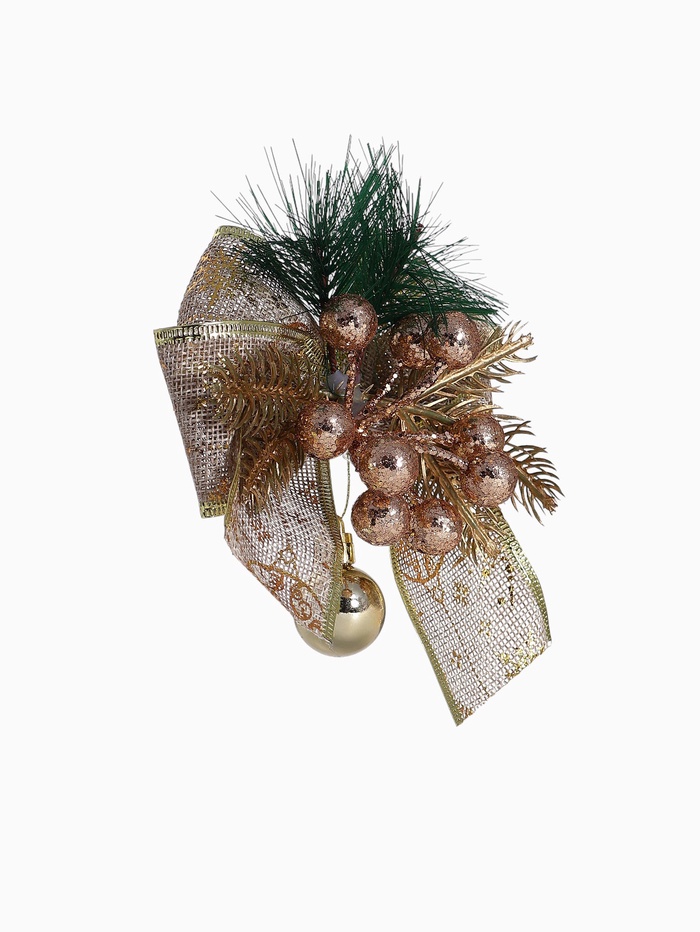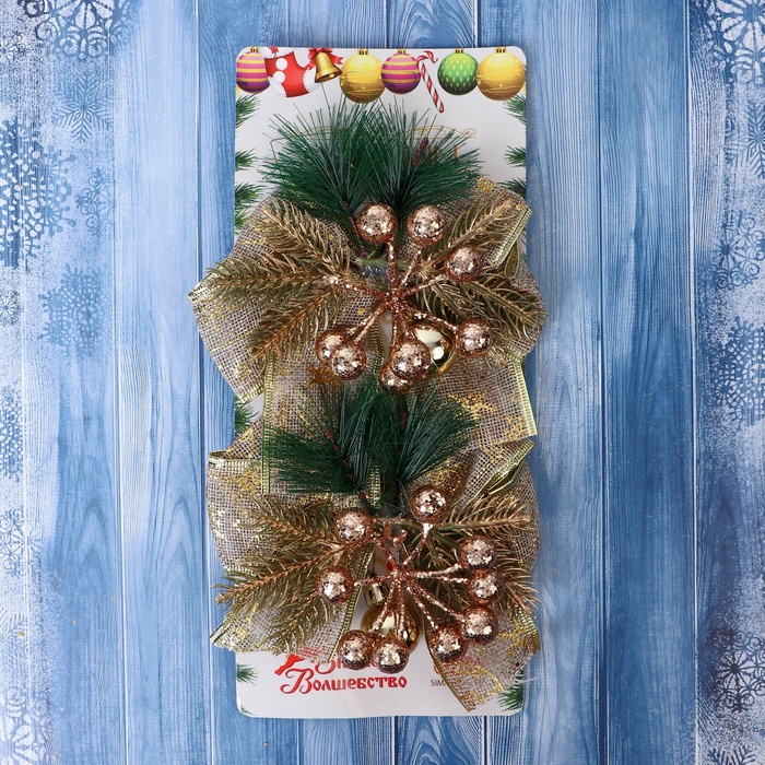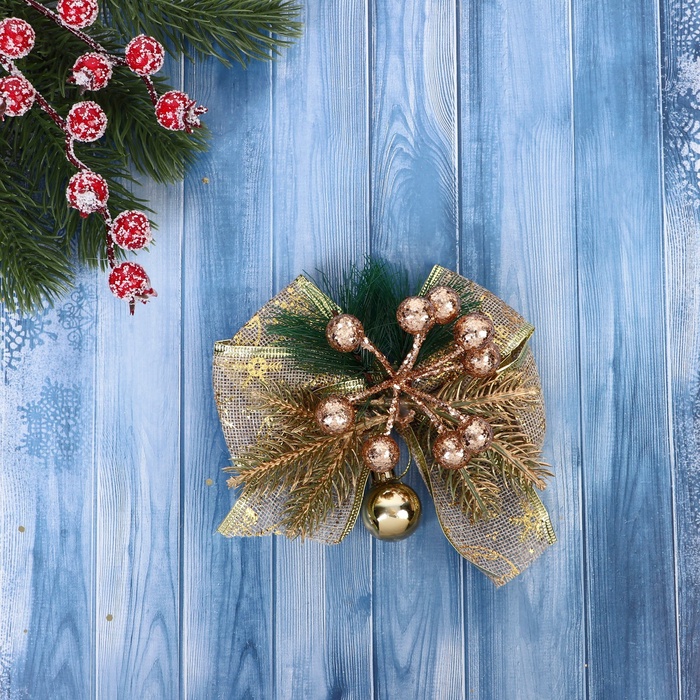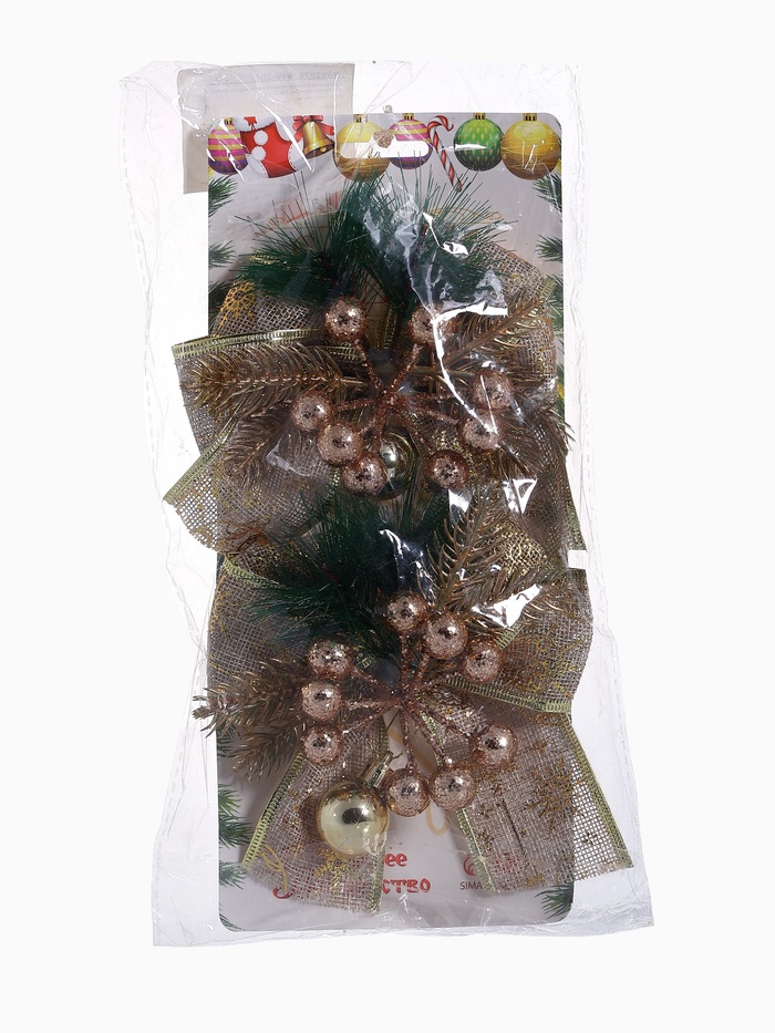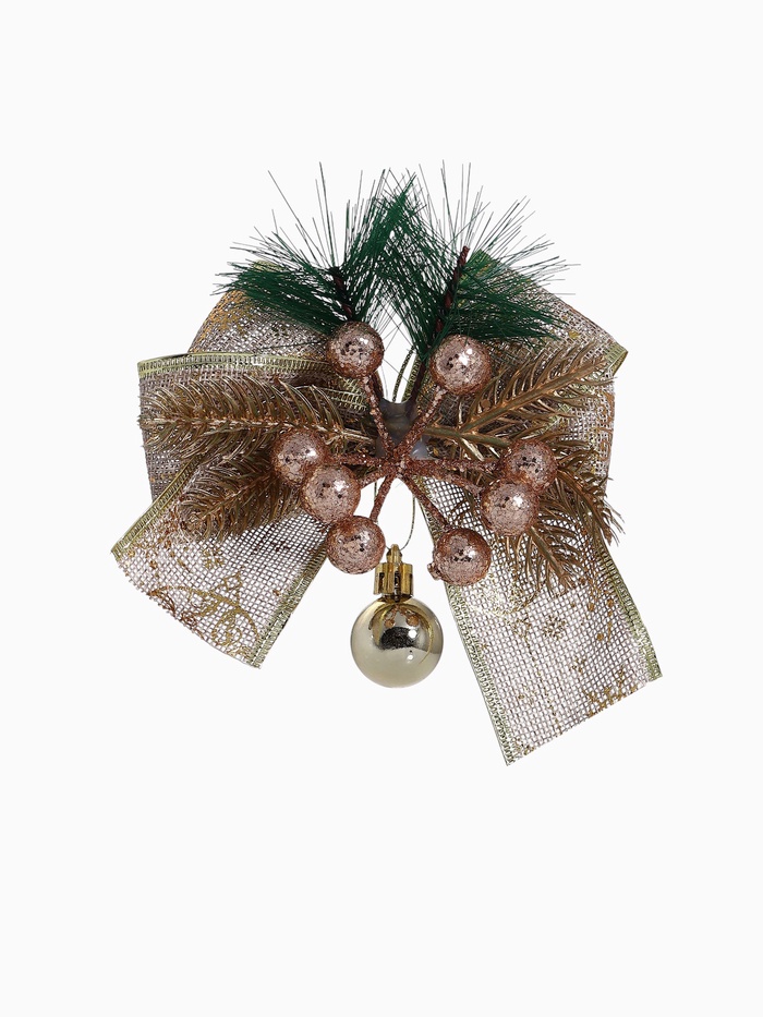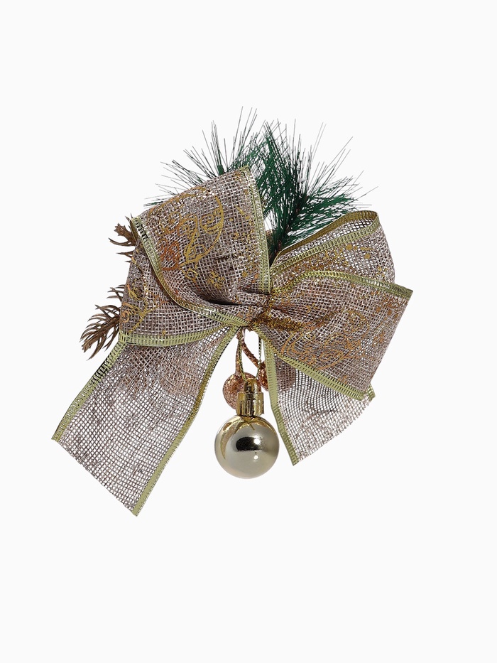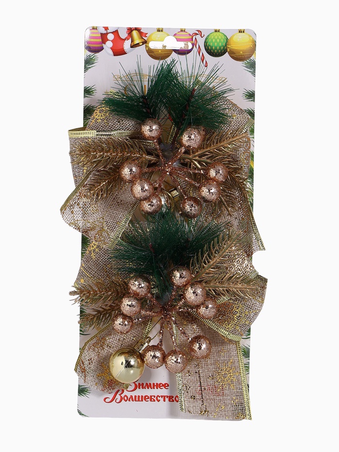 Набор из двух ёлочных украшений в форме бантов с принтом выполнен из пластика золотистого цвета и отражает стиль новогоднего барокко. Размер каждого банта — 13×12 см, что обеспечивает заметный акцент на праздничной ёлке или в композициях. Наполненная структура придаёт объём и сохраняет форму изделий, подчёркивая торжественность оформления.