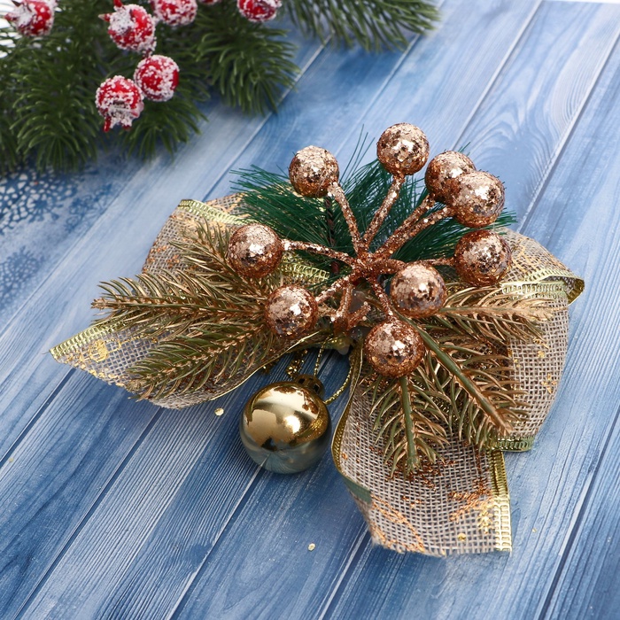 - Золотистый оттенок гармонирует с классическим новогодним декором.
