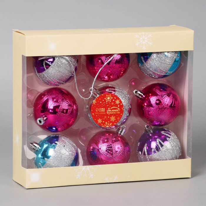 - Комплект из 9 шаров с оригинальным волнистым узором.